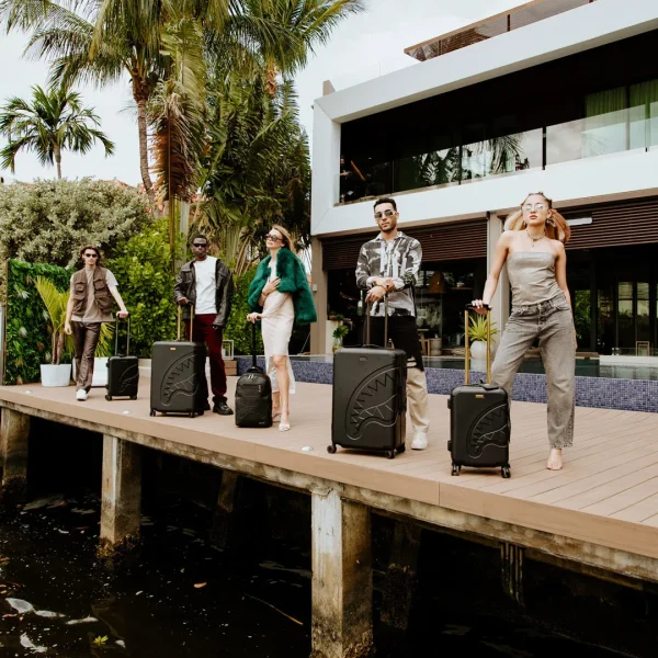 REALITY CHECK SHARKITECTURE CARRY-ON JETBLACK LUGGAGE (GOLD HARDWARE)