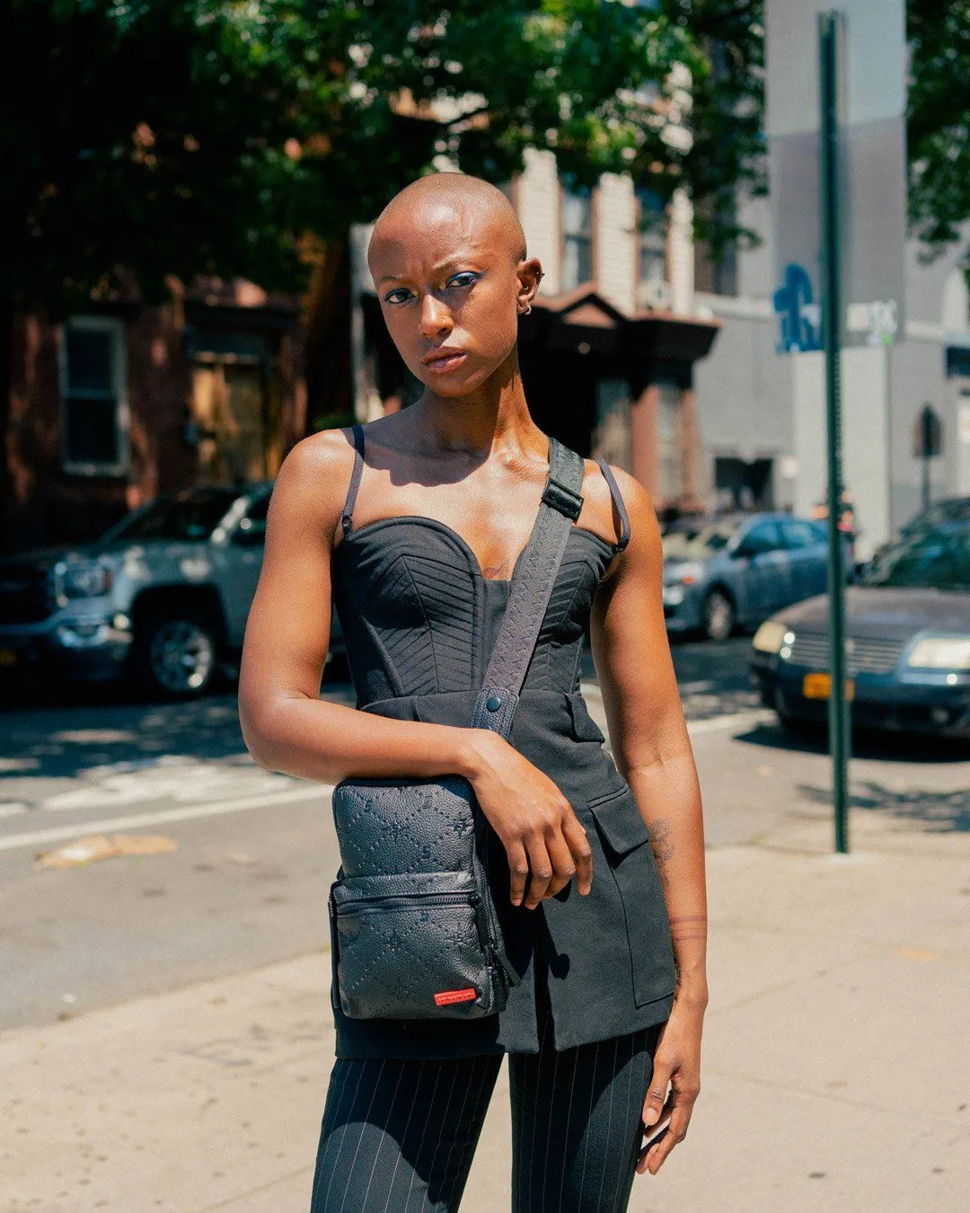 The 24/7 collection imbues only the finest features of vegan leather, sleek hardware, embossed sprayburst pattern so you can go into stealth mode!