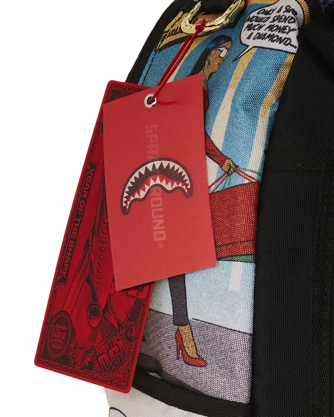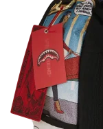 Dimensions: 18″ x 6″ x 11.5″ ? Front zipper pocket ? Side pockets ? Zippered Stash pocket ? Separate velour sunglass compartment ? Ergonomic mesh back padding ? Adjustable Straps for custom sizing ? Gold zippers with metal hardware ? Metal “Sprayground Authentic” badge ? Slide through back sleeve connects to carry-on luggage to free your hands