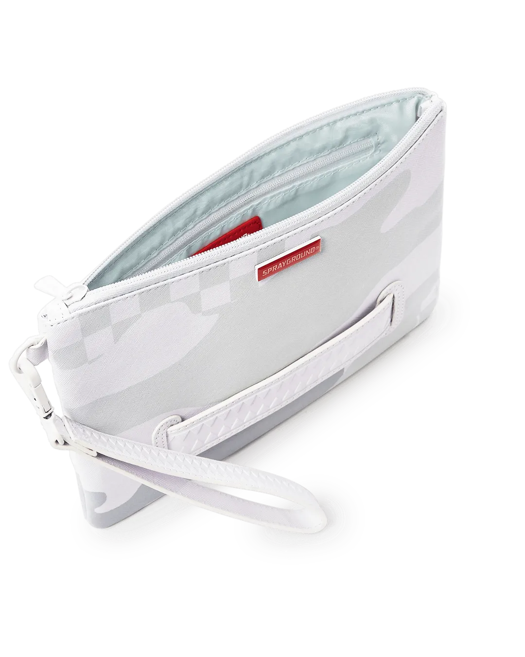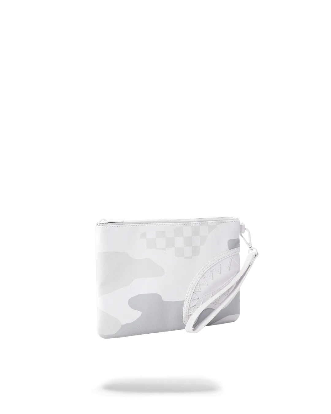 Pouch with removable wristlet strap, Handle on front panel, Zip Closure, secret stash pocket on side seam