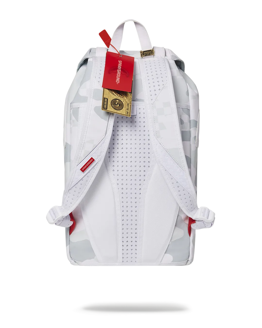Dimensions: 20.5″ x 5″ x 11.5″ ? Top Flap opening w/ adjustable magnetic snap buckle closure ? Draw-string closure ? Front pocket with adjustable magnetic snap buckle closure ? Ergonomic mesh back padding ? Adjustable straps for custom sizing ? Nylon zippers with metal hardware ? Embossed sharkteeth straps ? Slide through back sleeve connects to carry-on luggage to free your hands