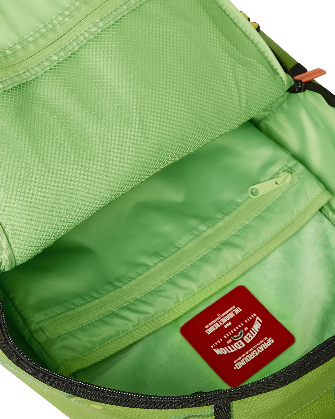 Dimensions: 18″ x 6″ x 11.5″ ? Front zipper pocket ? Side pockets ? Zippered Stash pocket ? Separate velour sunglass compartment ? Ergonomic mesh back padding ? Adjustable Straps for custom sizing ? Gold zippers with metal hardware ? Metal “Sprayground Authentic” badge ? Slide through back sleeve connects to carry-on luggage to free your hands