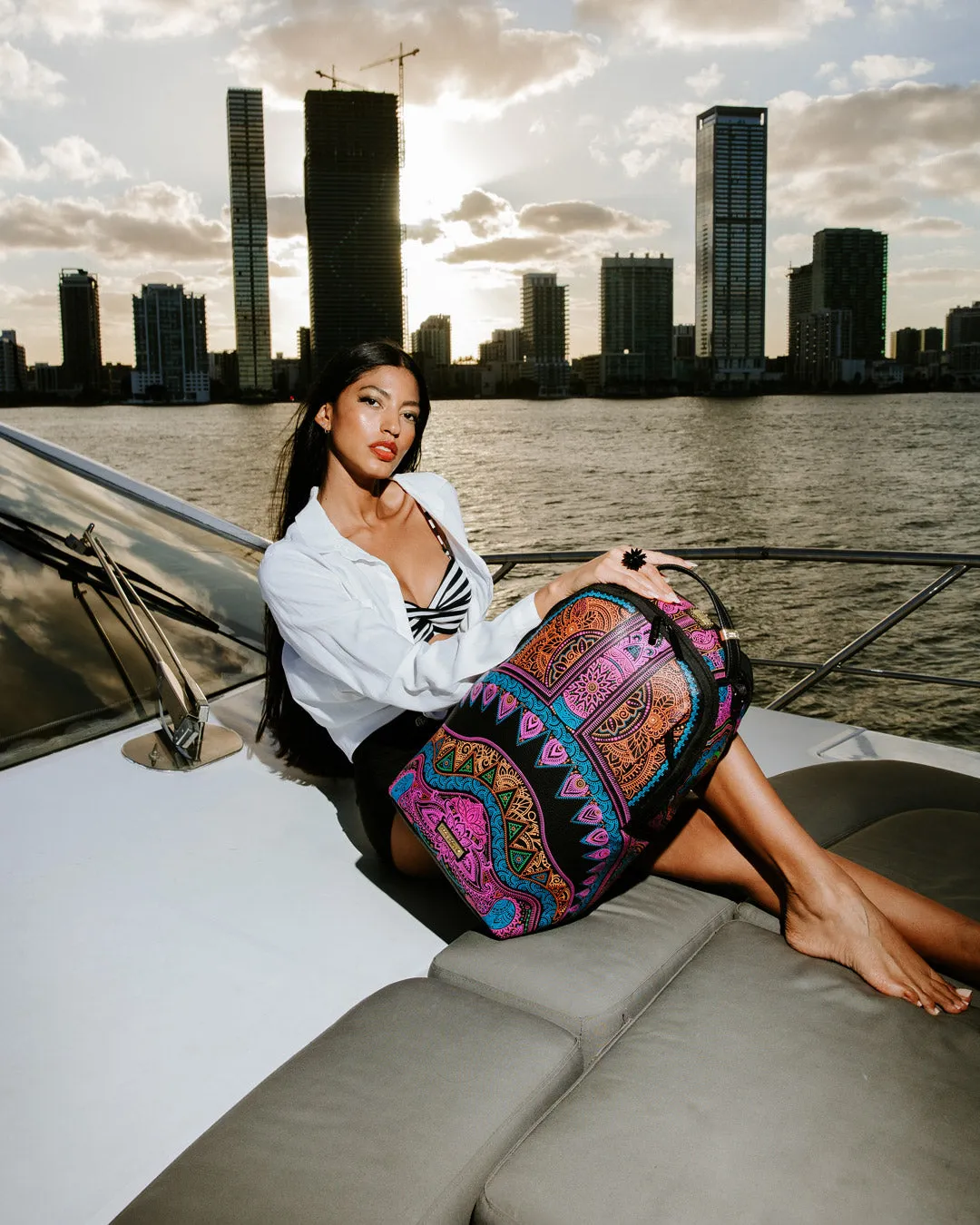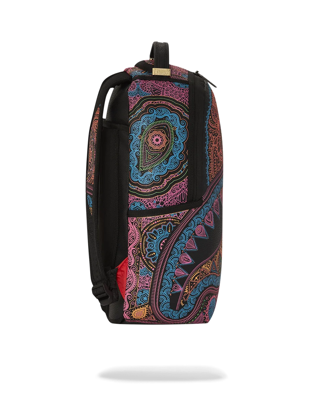 Dimensions: 18″ x 6″ x 11.5″ ? Front zipper pocket ? Side pockets ? Zippered Stash pocket ? Separate velour sunglass compartment ? Ergonomic mesh back padding ? Adjustable Straps for custom sizing ? Gold zippers with metal hardware ? Metal “Sprayground Authentic” badge ? Slide through back sleeve connects to carry-on luggage to free your hands