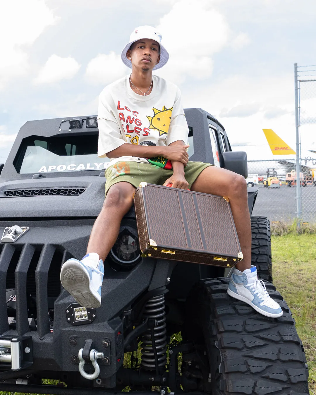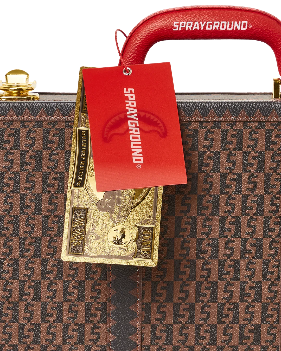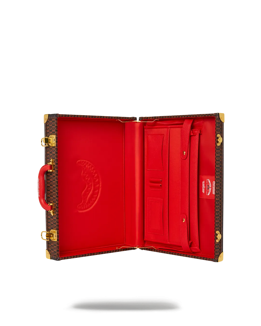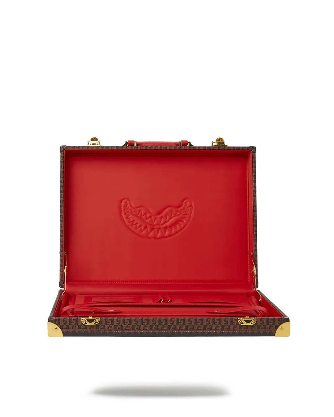 Customized Red Satin lining with Embossed Shark logo and Vegan leather trims