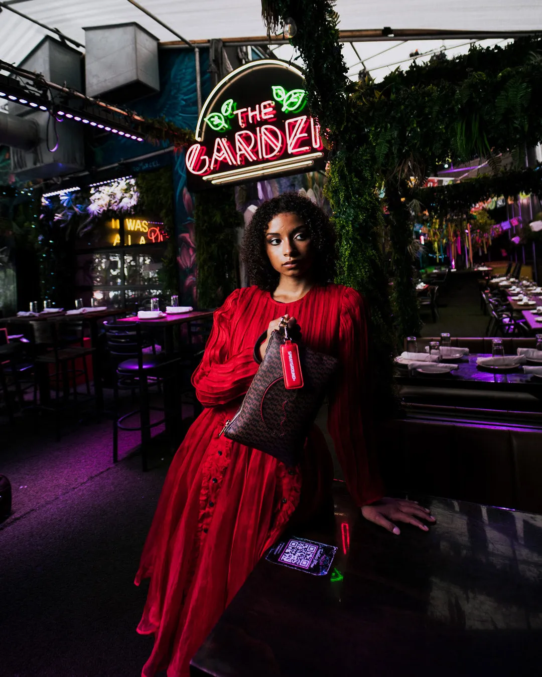 Pouch with removable wristlet strap, Handle on front panel, Zip Closure