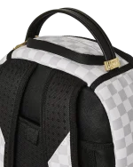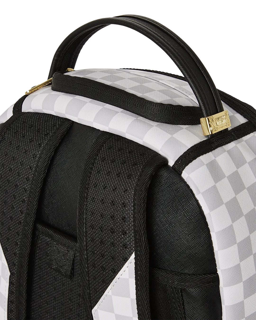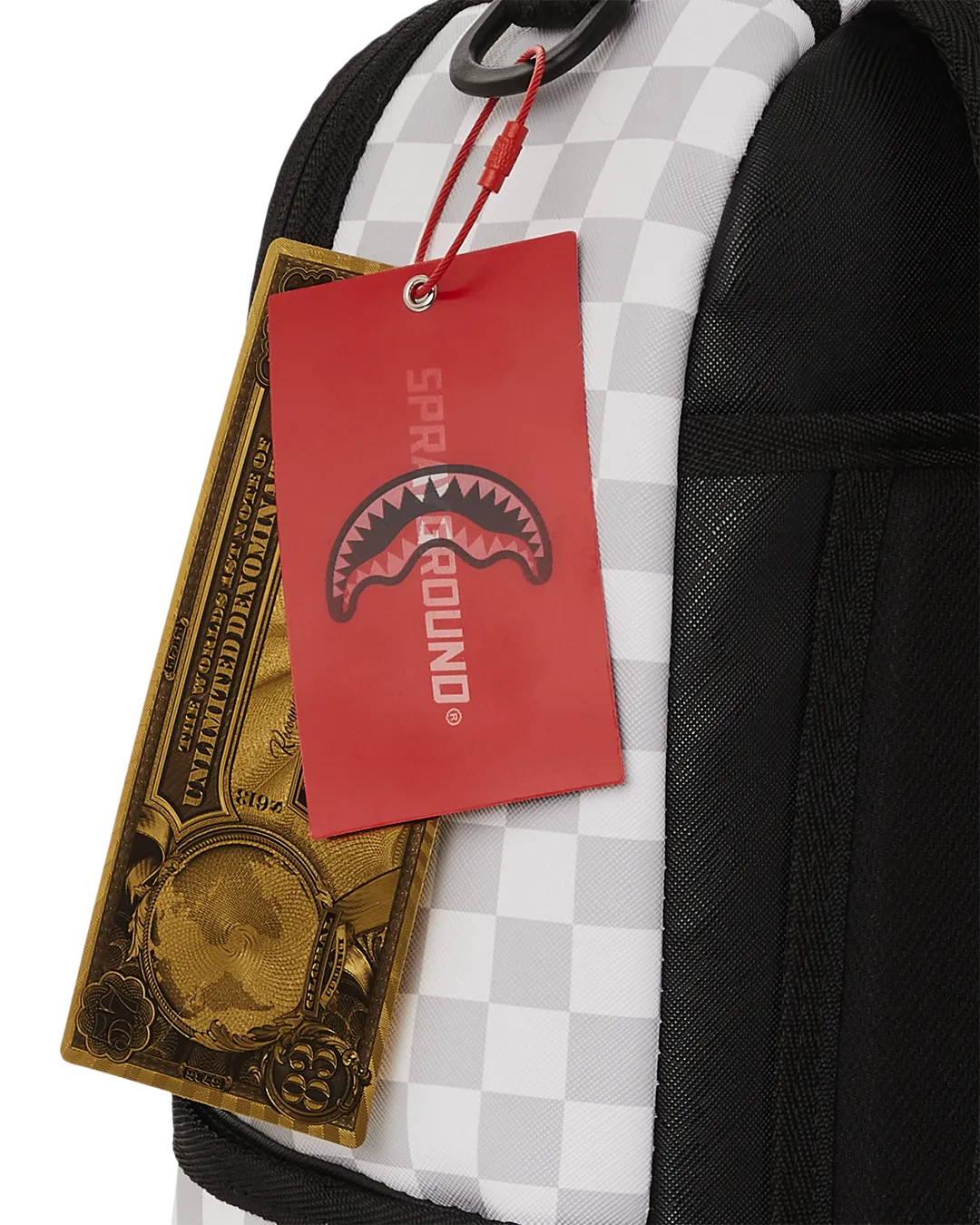 Dimensions: 18″ x 6″ x 11.5″ ? Front zipper pocket ? Side pockets ? Zippered Stash pocket ? Separate velour sunglass compartment ? Ergonomic mesh back padding ? Adjustable Straps for custom sizing ? Gold zippers with metal hardware ? Metal “Sprayground Authentic” badge ? Slide through back sleeve connects to carry-on luggage to free your hands
