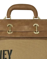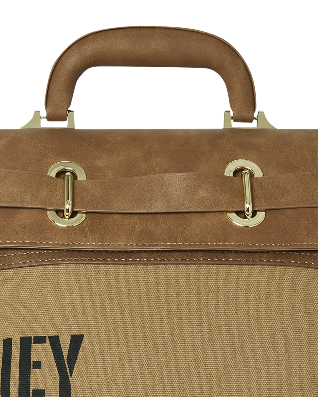 Gold hardware and secure belted turn lock closure