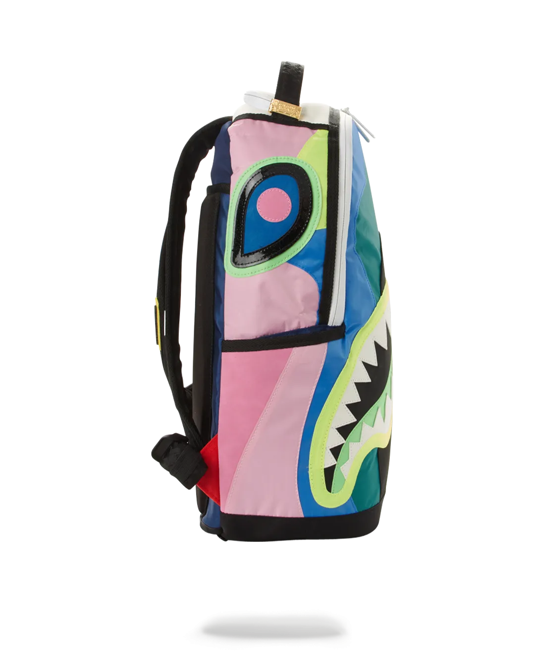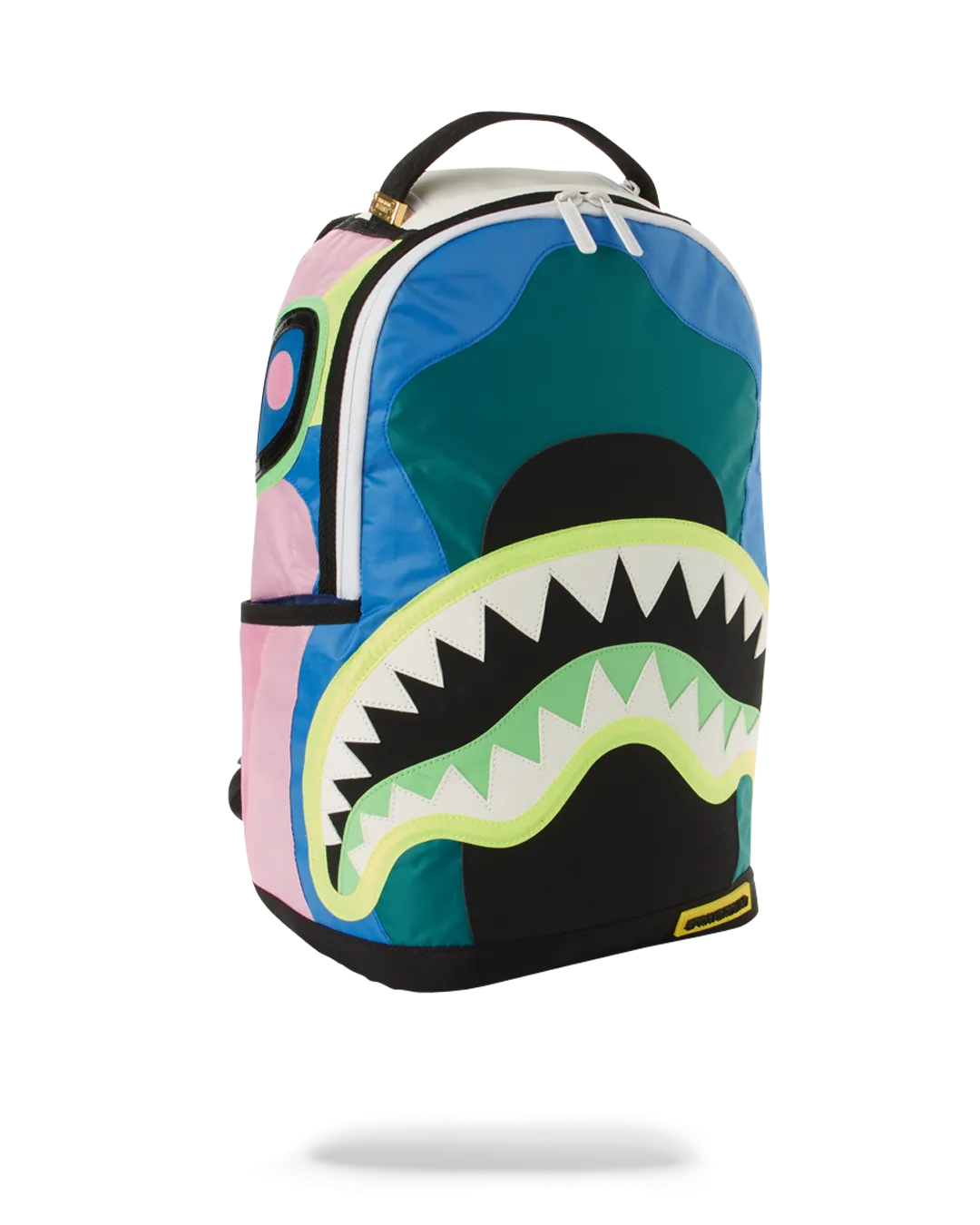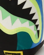 Dimensions: 18″ x 6″ x 11.5″ ? Front zipper pocket ? Side pockets ? Zippered Stash pocket ? Separate velour sunglass compartment ? Ergonomic mesh back padding ? Adjustable Straps for custom sizing ? White zippers with metal hardware ? Metal “Sprayground Authentic” badge ? Slide through back sleeve connects to carry-on luggage to free your hands