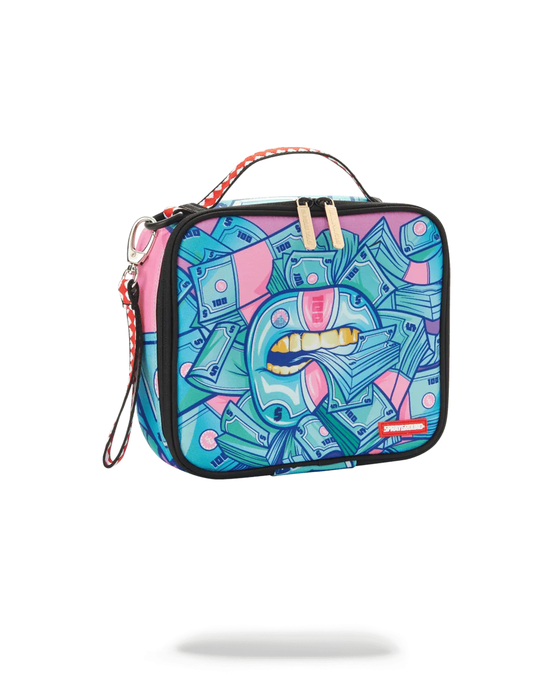 Dimensions: 8.5″ x 3″ x 8.5″ ? Double zipper opening ? Top handle ? Removeable side handle ? Gold zippers with metal hardware ? Zippered stash pocket