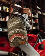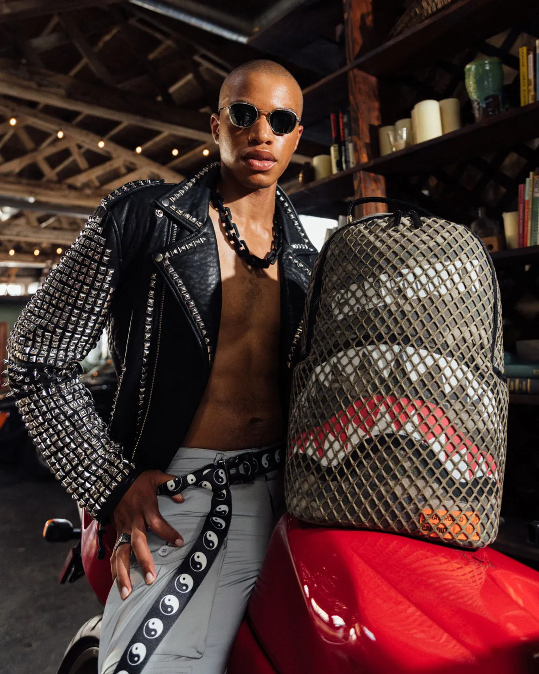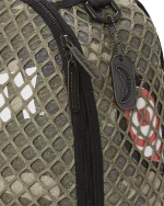 Dimensions: 18″ x 6″ x 11.5″ ? Front zipper pocket ? Side pockets ? Zippered Stash pocket ? Separate velour sunglass compartment ? Ergonomic mesh back padding ? Adjustable Straps for custom sizing ? Green zippers with metal hardware ? Metal “Sprayground Authentic” badge ? Slide through back sleeve connects to carry on luggage to free your hands