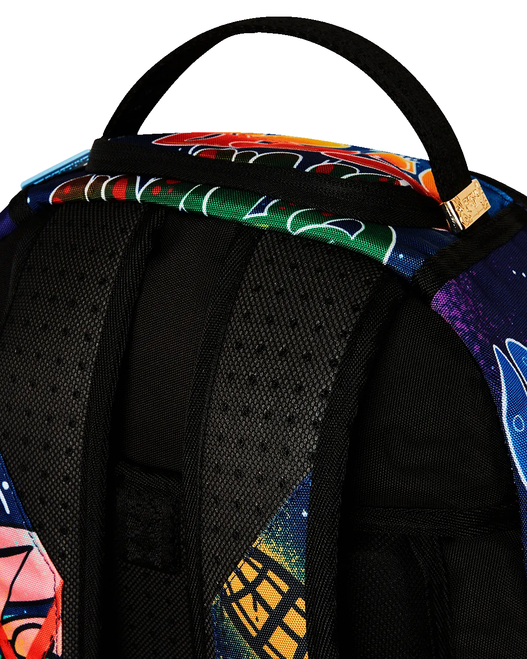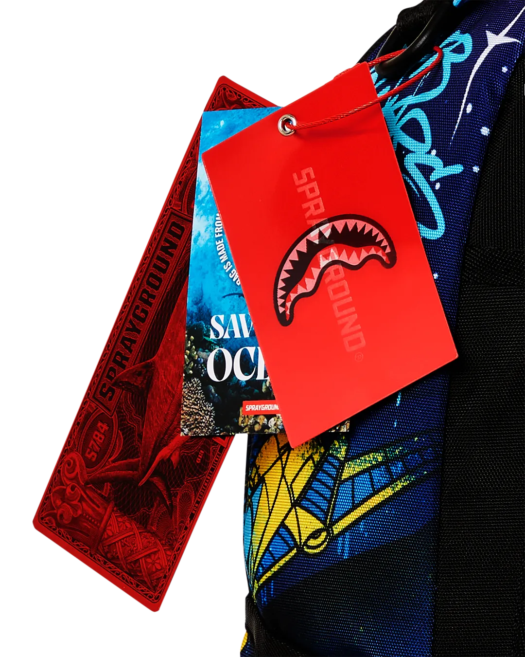 Dimensions: 18″ x 6″ x 11.5″ ? Front zipper pocket ? Side pockets ? Zippered Stash pocket ? Separate velour sunglass compartment ? Ergonomic mesh back padding ? Adjustable Straps for custom sizing ? Gold zippers with metal hardware ? Metal “Sprayground Authentic” badge ? Slide through back sleeve connects to carry-on luggage to free your hands