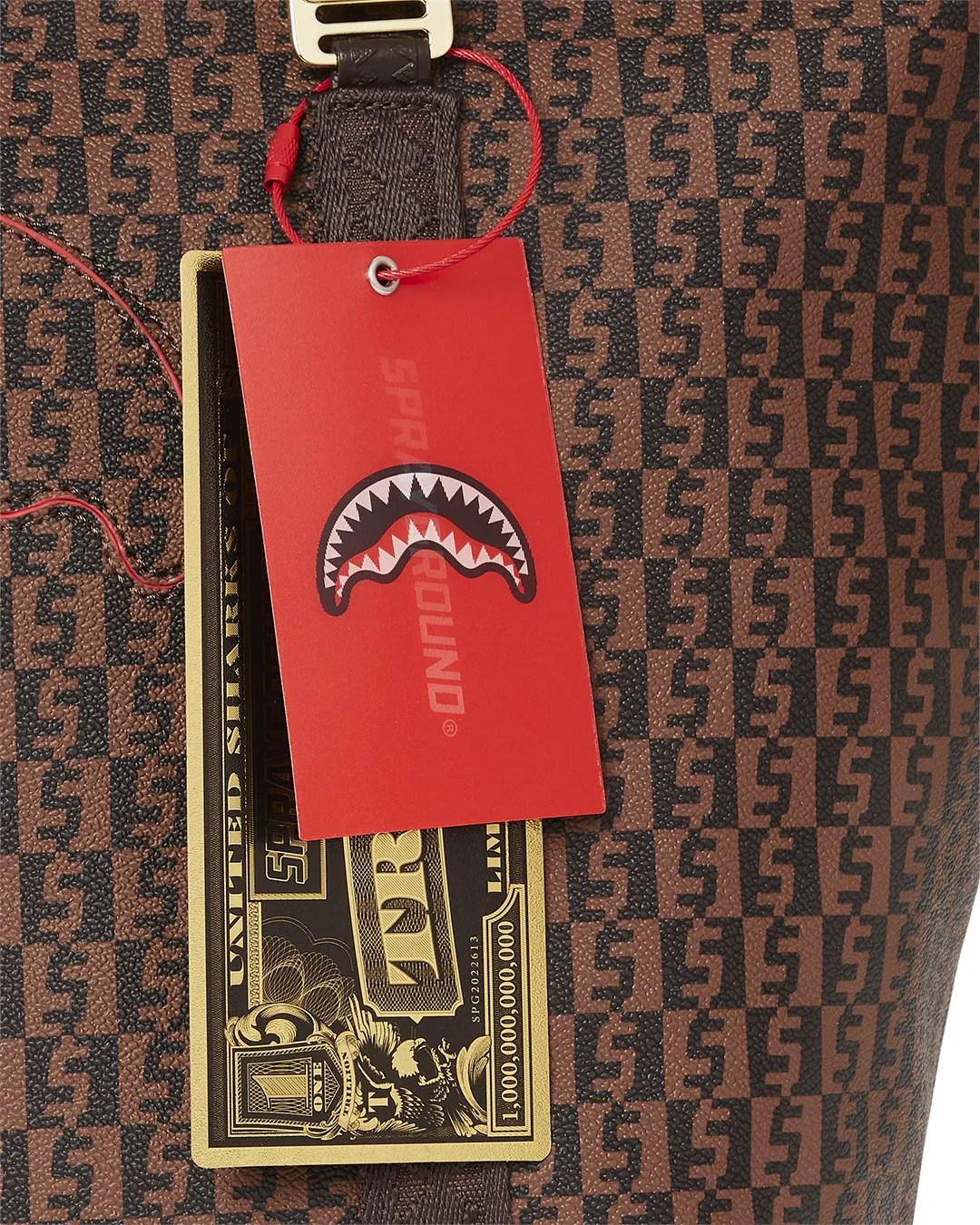 Dimensions: 19″ x 6.5″ x 11.5″ ? Top zipper opening ? Top double handle ? Sprayground keychain ? Gold zippers with metal hardware