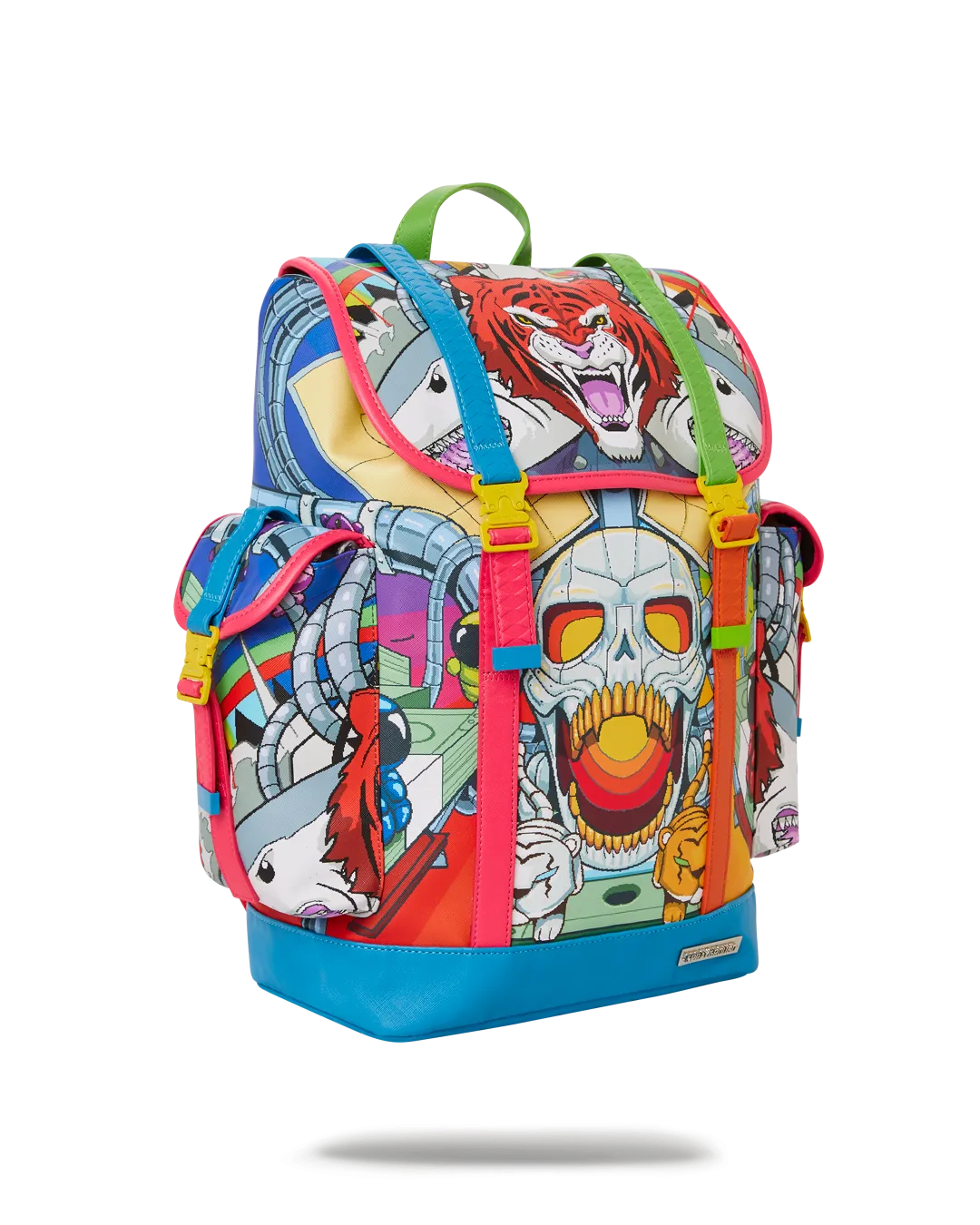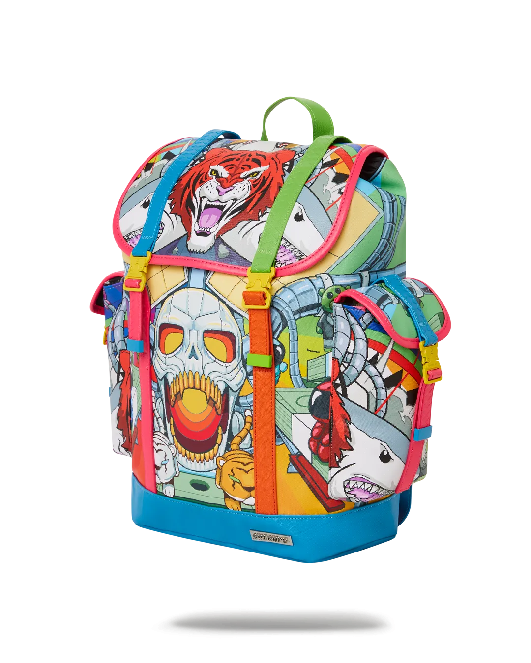 Dimensions: 18″ x 6″ x 11.5″ ? Top Flap opening w/ adjustable metal enamel buckles and drawstring closure ? Two side cargo pockets with metal enamel buckles and drawstring closures ? Zippered Stash pocket ? Ergonomic mesh back padding ? Adjustable Straps for custom sizing ? Embossed logo on back strap