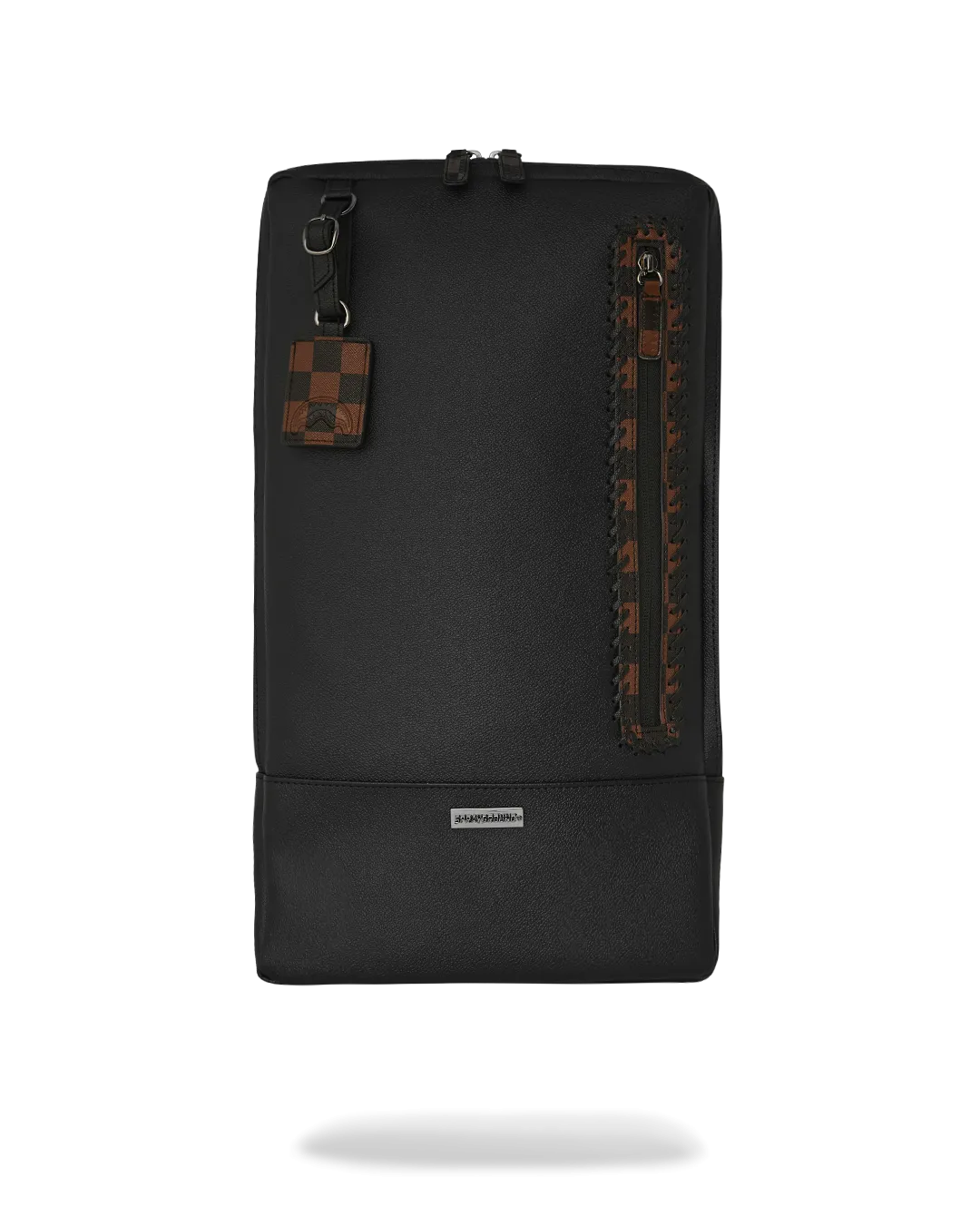 Ergonomic mesh back padding, Whip stitch detailing, adjustable straps, 2 exterior pockets, features a whip stitch luggage tag, embossed zipper pulls