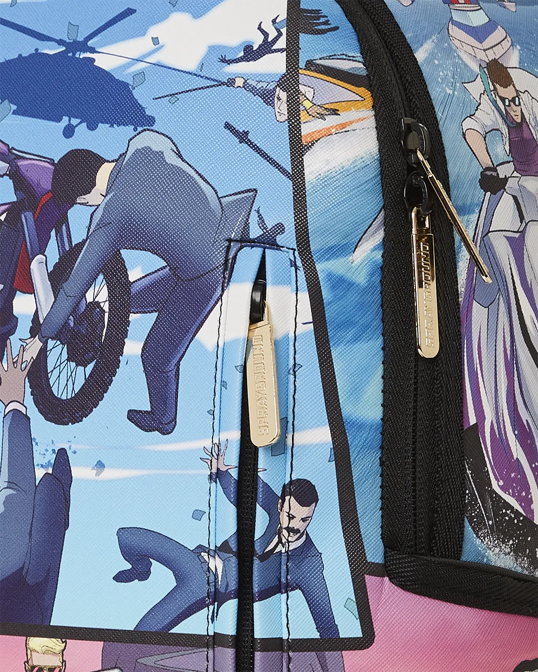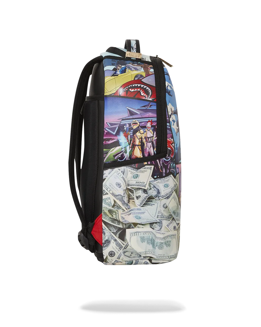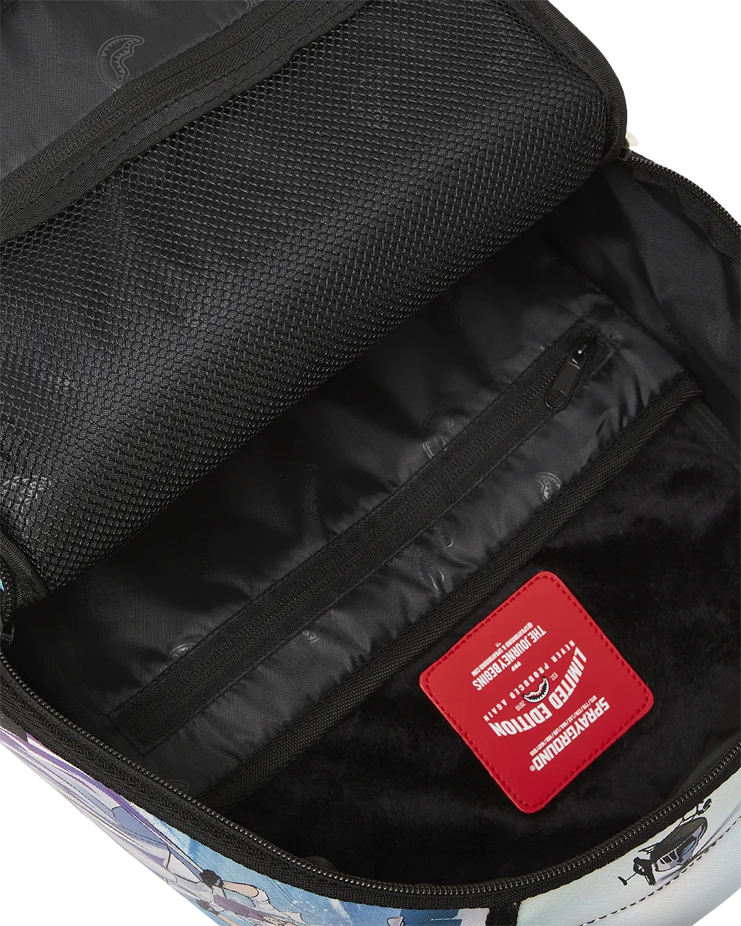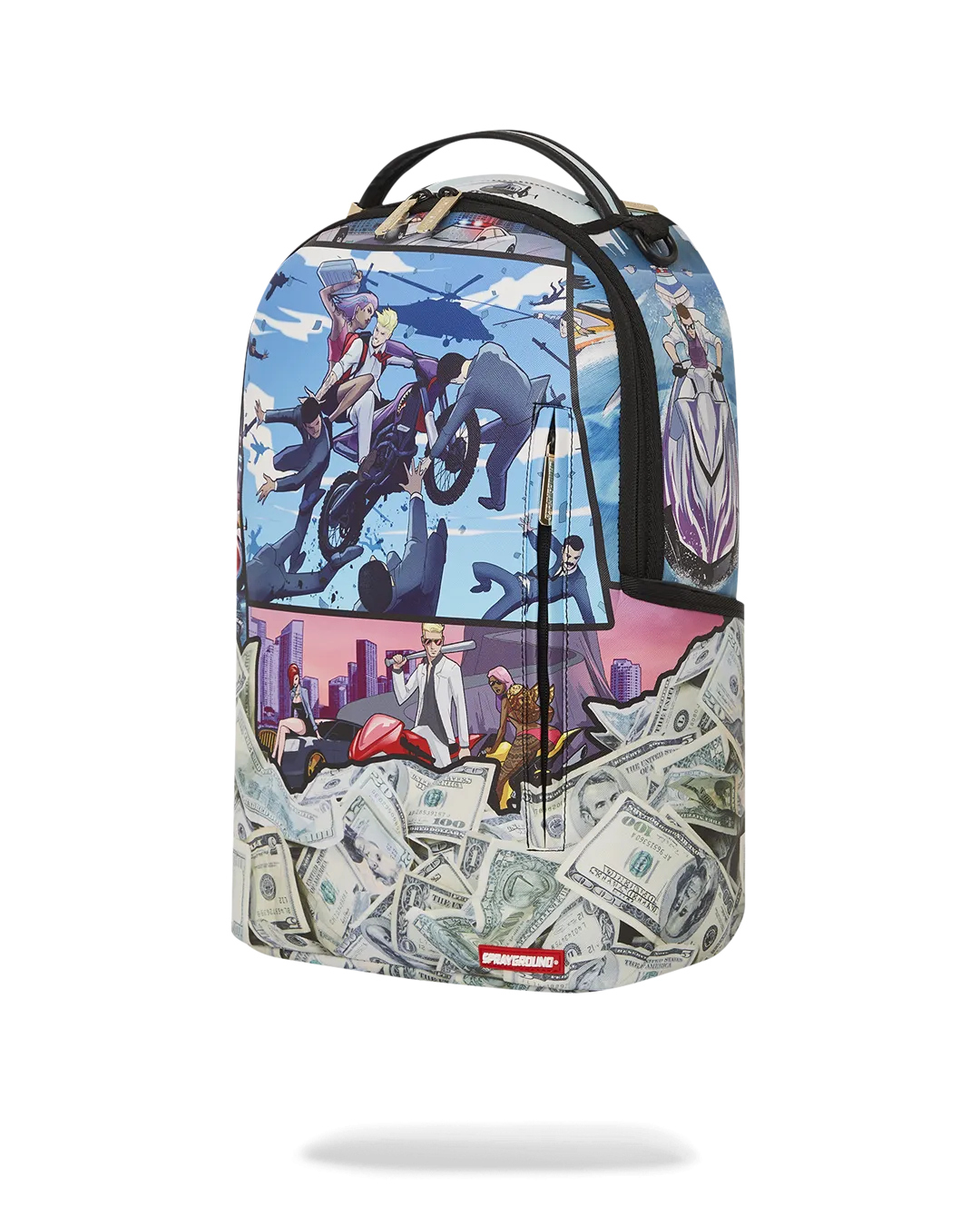 Dimensions: 18″ x 6″ x 11.5″ ? Front zipper pocket ? Side pockets ? Zippered Stash pocket ? Separate velour sunglass compartment ? Ergonomic mesh back padding ? Adjustable Straps for custom sizing ? Gold zippers with metal hardware ? Metal “Sprayground Authentic” badge ? Slide through back sleeve connects to carry-on luggage to free your hands