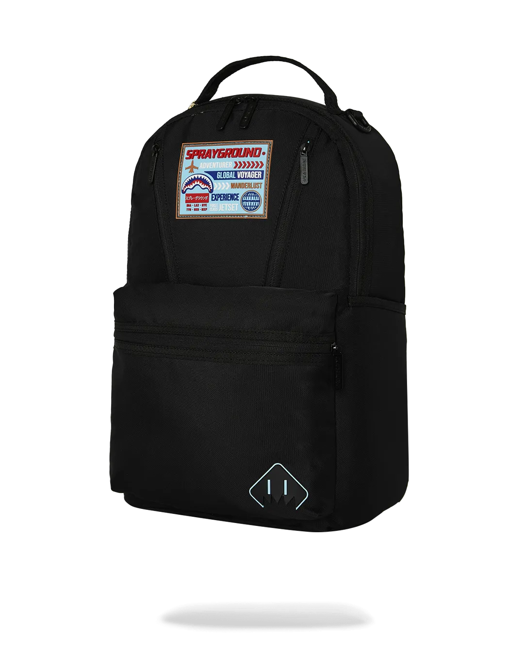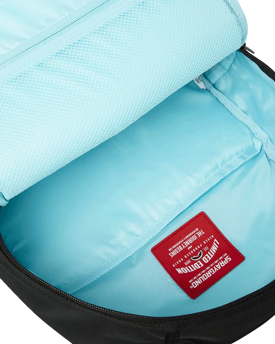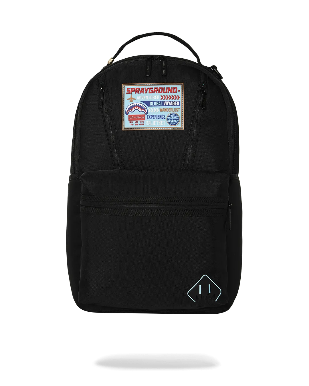 Dimensions: 18″ x 6″ x 11.5″ ? Front zipper pocket ? Side pockets ? Zippered Stash pocket ? Separate velour sunglass compartment ? Ergonomic mesh back padding ? Adjustable Straps for custom sizing ? Gold zippers with metal hardware ? Metal “Sprayground Authentic” badge ? Slide through back sleeve connects to carry-on luggage to free your hands