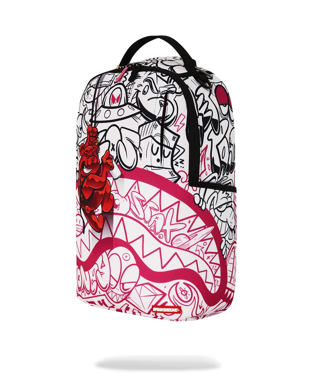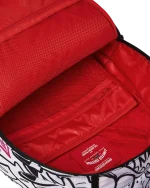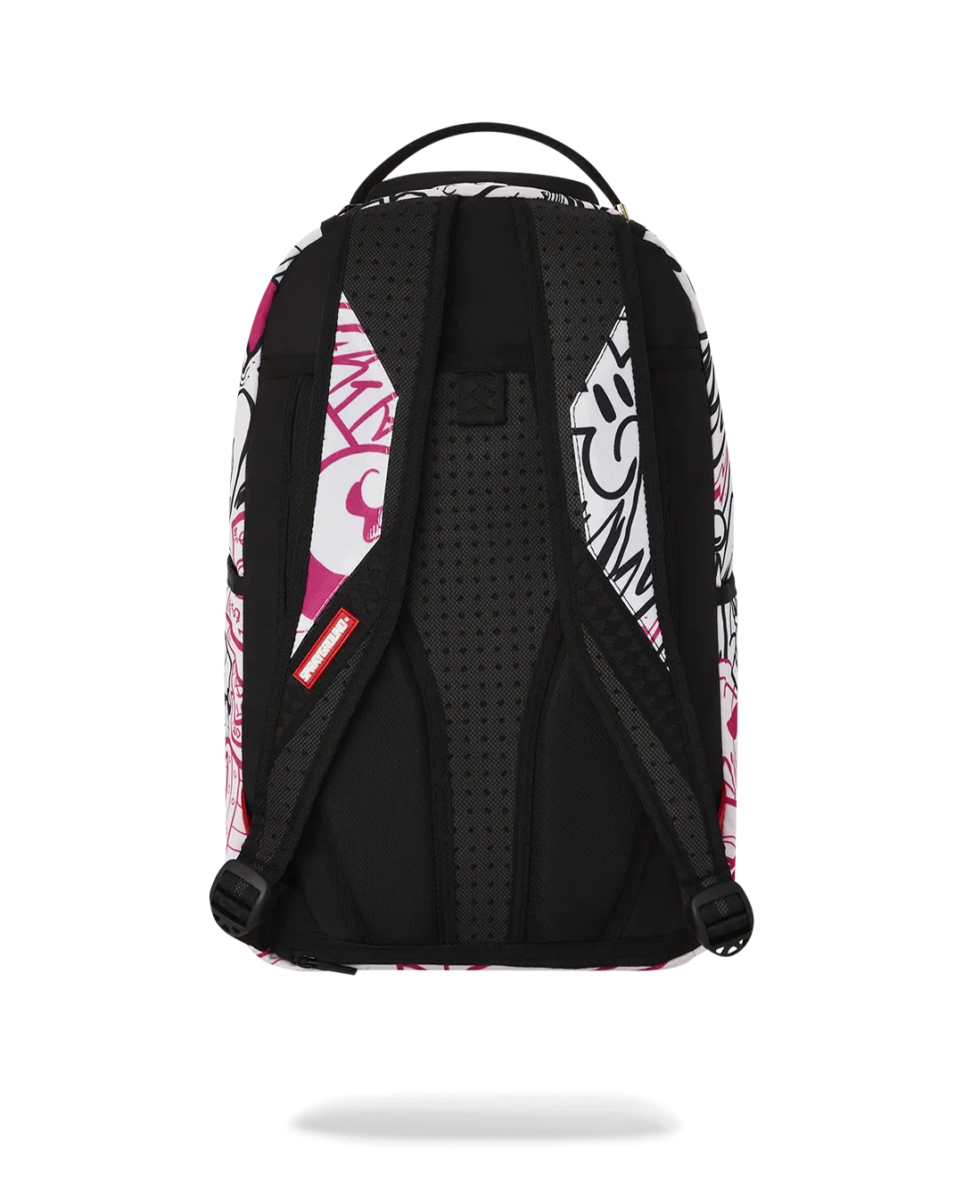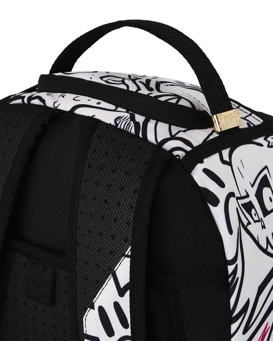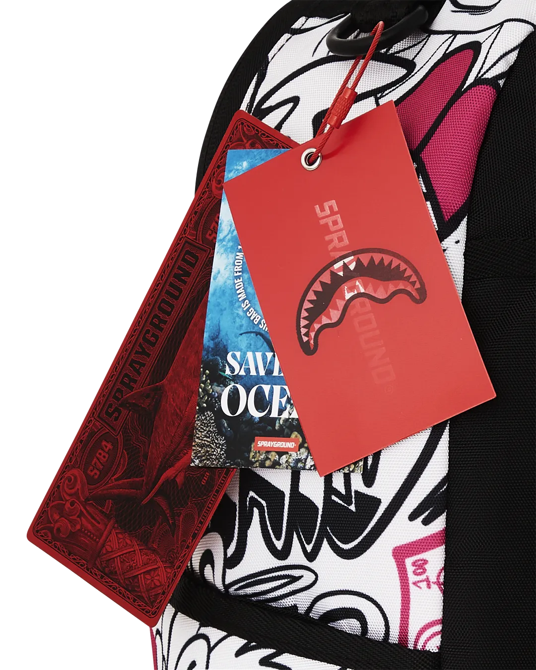 Dimensions: 18″ x 6″ x 11.5″ ? Front zipper pocket ? Side pockets ? Zippered Stash pocket ? Separate velour sunglass compartment ? Ergonomic mesh back padding ? Adjustable Straps for custom sizing ? Gold zippers with metal hardware ? Metal “Sprayground Authentic” badge ? Slide through back sleeve connects to carry-on luggage to free your hands