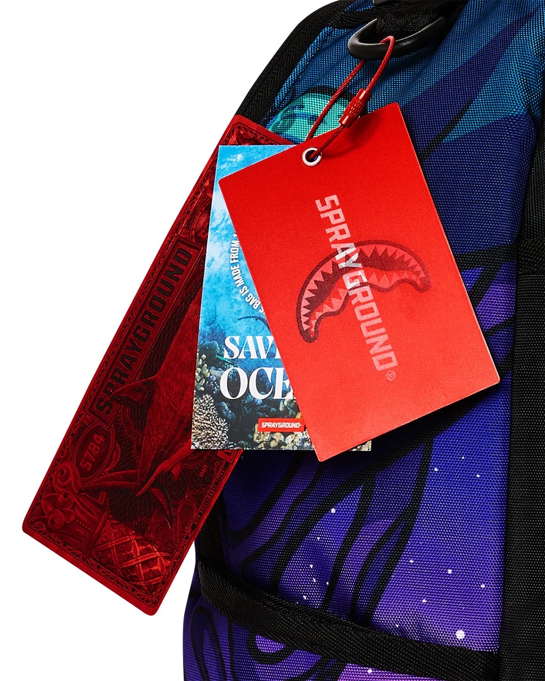 Dimensions: 18″ x 6″ x 11.5″ ? Front zipper pocket ? Side pockets ? Zippered Stash pocket ? Separate velour sunglass compartment ? Ergonomic mesh back padding ? Adjustable Straps for custom sizing ? Gold zippers with metal hardware ? Metal “Sprayground Authentic” badge ? Slide through back sleeve connects to carry-on luggage to free your hands