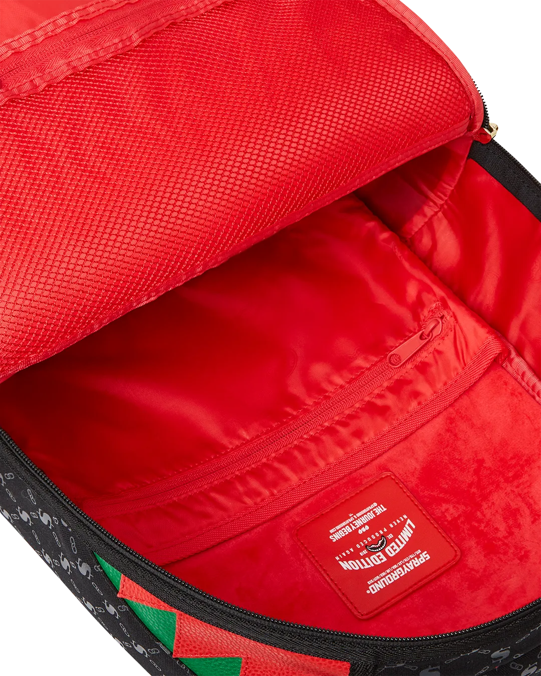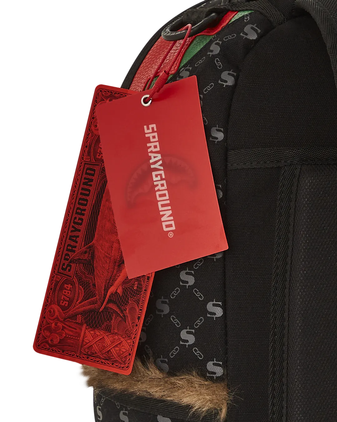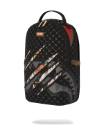 Dimensions: 18″ x 6″ x 11.5″ ? Front zipper pocket ? Side pockets ? Zippered Stash pocket ? Separate velour sunglass compartment ? Ergonomic mesh back padding ? Adjustable Straps for custom sizing ? Gold zippers with metal hardware ? Metal “Sprayground Authentic” badge ? Slide through back sleeve connects to carry-on luggage to free your hands