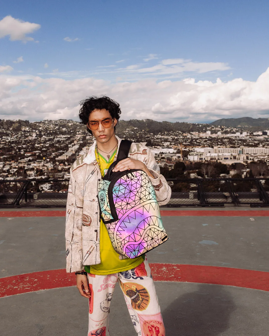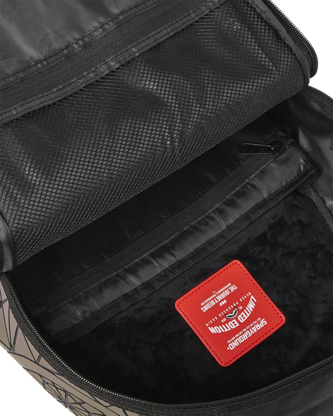 Dimensions: 18″ x 6″ x 11.5″ ? Front zipper pocket ? Side pockets ? Zippered Stash pocket ? Separate velour sunglass compartment ? Ergonomic mesh back padding ? Adjustable Straps for custom sizing ? Gold zippers with metal hardware ? Metal “Sprayground Authentic” badge ? Slide through back sleeve connects to carry-on luggage to free your hands