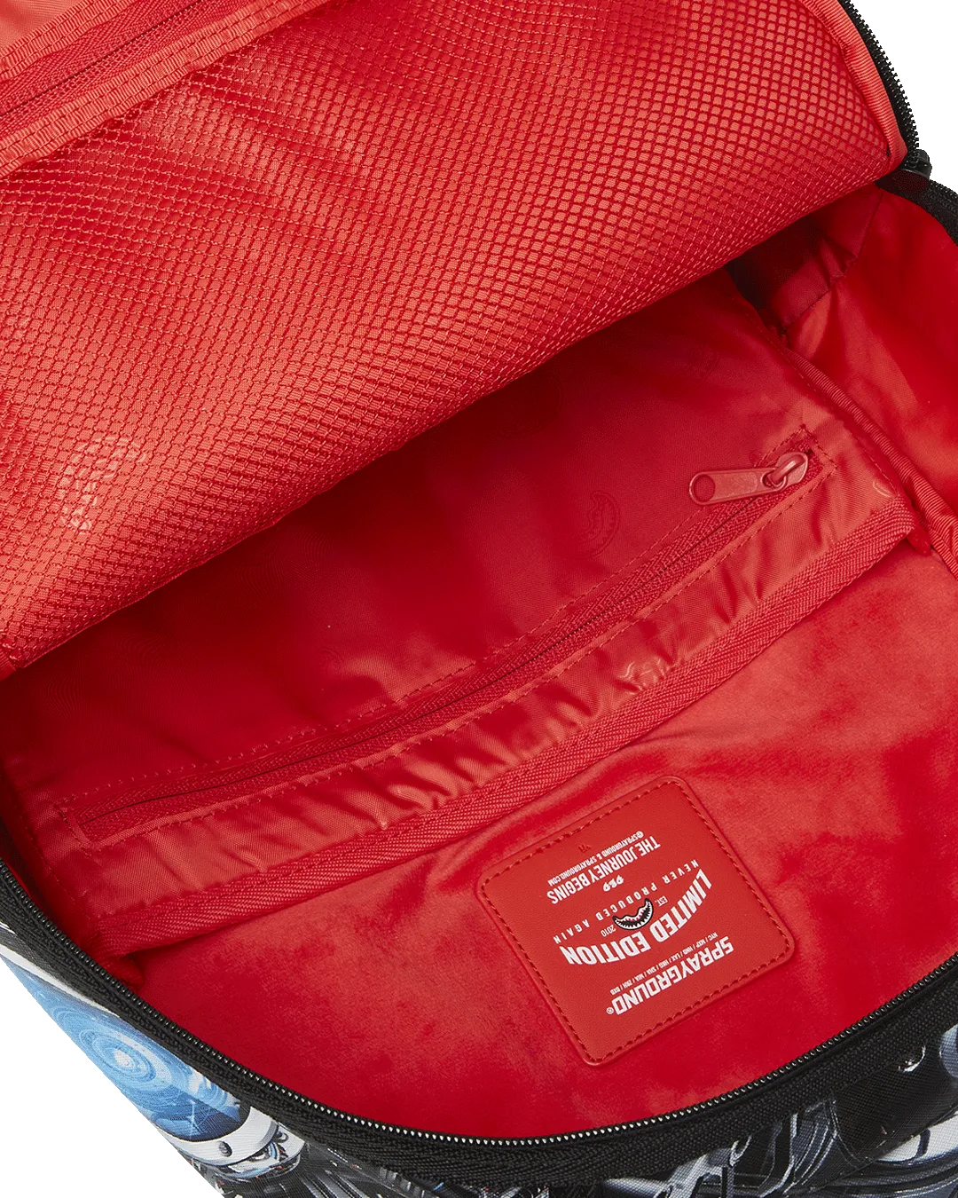 Dimensions: 18″ x 6″ x 11.5″ ? Front zipper pocket ? Side pockets ? Zippered Stash pocket ? Separate velour sunglass compartment ? Ergonomic mesh back padding ? Adjustable Straps for custom sizing ? Gold zippers with metal hardware ? Metal “Sprayground Authentic” badge ? Slide through back sleeve connects to carry-on luggage to free your hands