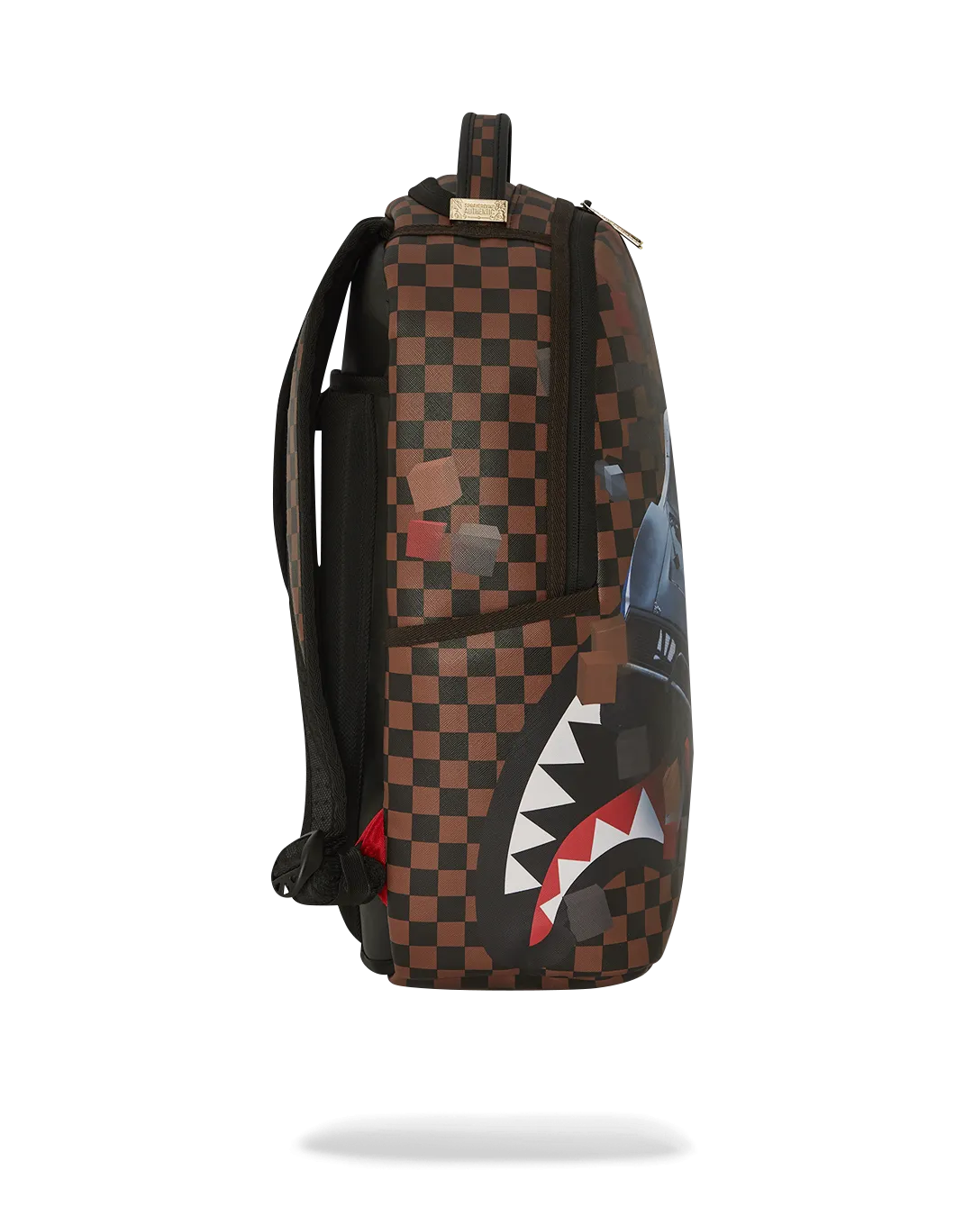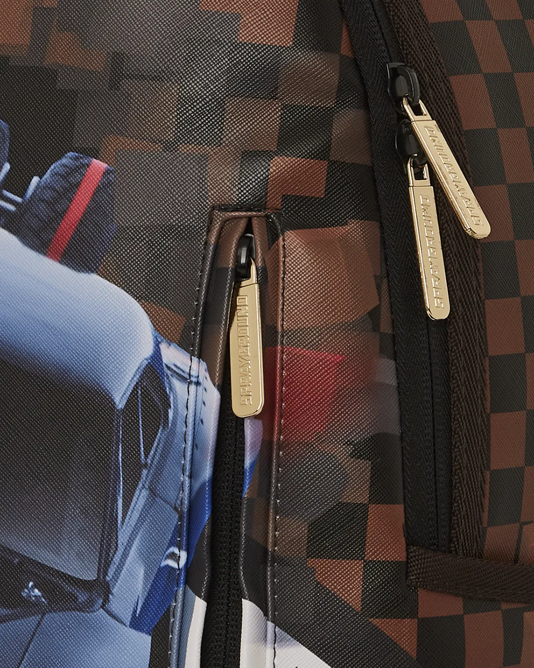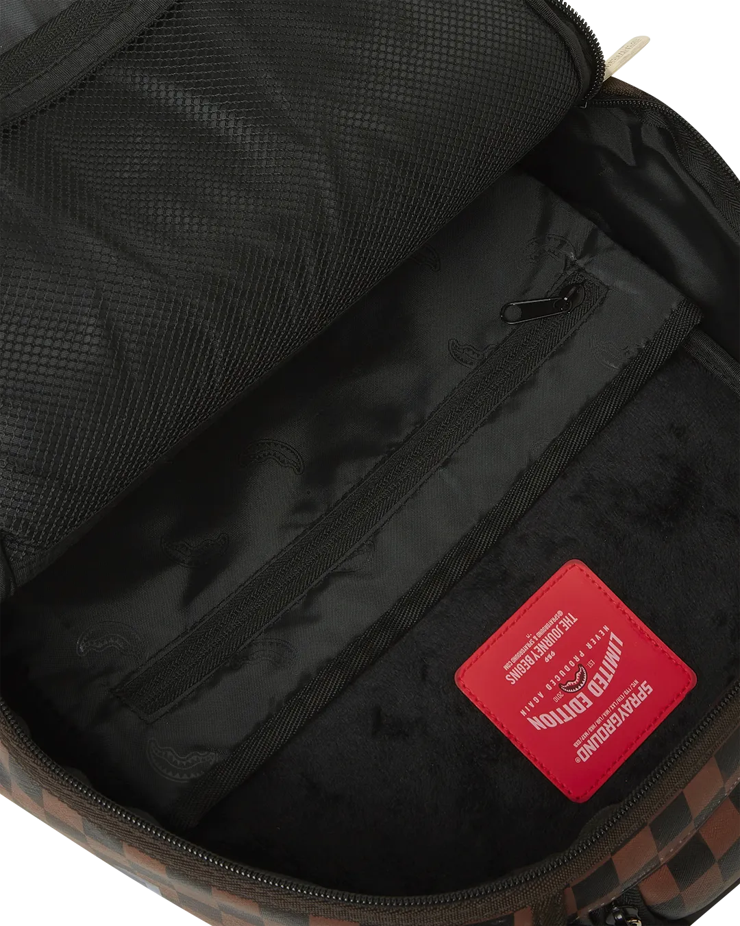 Dimensions: 18″ x 6″ x 11.5″ ? Front zipper pocket ? Side pockets ? Zippered Stash pocket ? Separate velour sunglass compartment ? Ergonomic mesh back padding ? Adjustable Straps for custom sizing ? Gold zippers with metal hardware ? Metal “Sprayground Authentic” badge ? Slide through back sleeve connects to carry-on luggage to free your hands