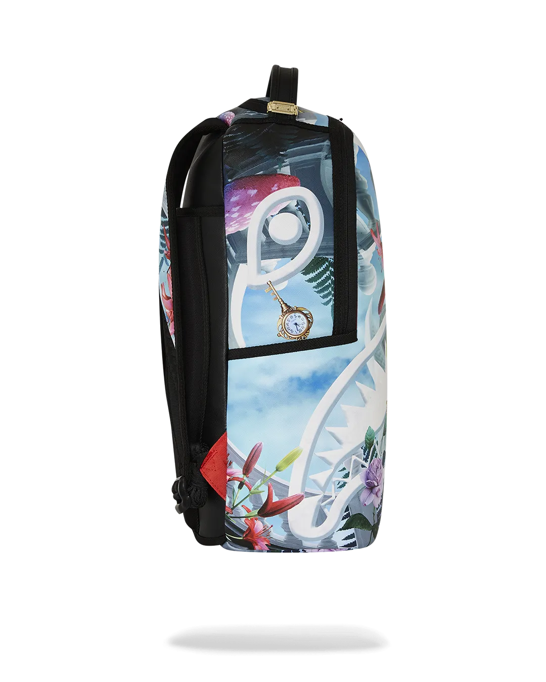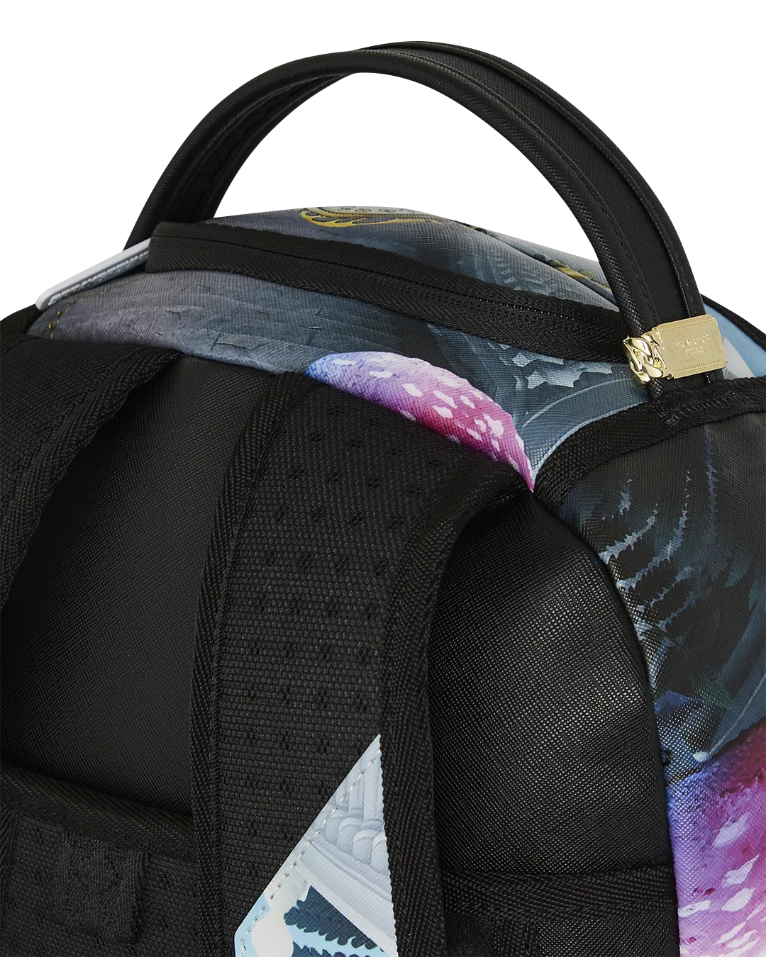 Dimensions: 18″ x 6″ x 11.5″ ? Front zipper pocket ? Side pockets ? Zippered Stash pocket ? Separate velour sunglass compartment ? Ergonomic mesh back padding ? Adjustable Straps for custom sizing ? Gold zippers with metal hardware ? Metal “Sprayground Authentic” badge ? Slide through back sleeve connects to carry-on luggage to free your hands