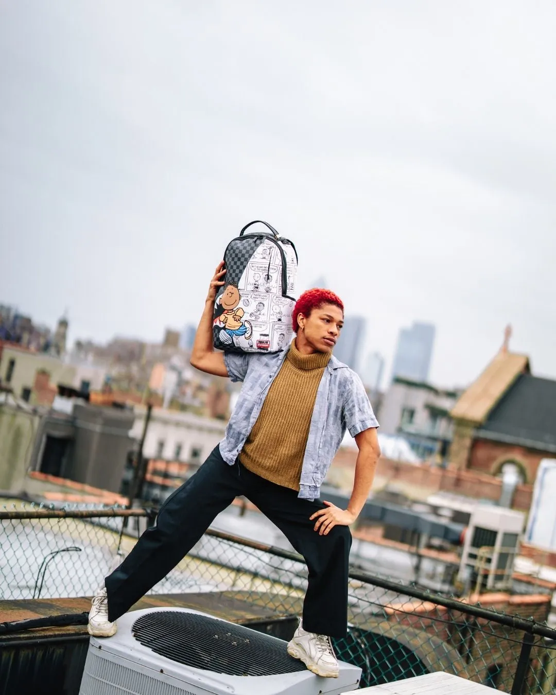 Dimensions: 18″ x 6″ x 11.5″ ? Front zipper pocket ? Side pockets ? Zippered Stash pocket ? Separate velour sunglass compartment ? Ergonomic mesh back padding ? Adjustable Straps for custom sizing ? Gold zippers with metal hardware ? Metal “Sprayground Authentic” badge ? Slide through back sleeve connects to carry-on luggage to free your hands