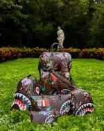 Dimensions: 19″ x 6.5″ x 11.5″ ? Top zipper opening ? Top double handle ? Sprayground keychain ? Gold zippers with metal hardware