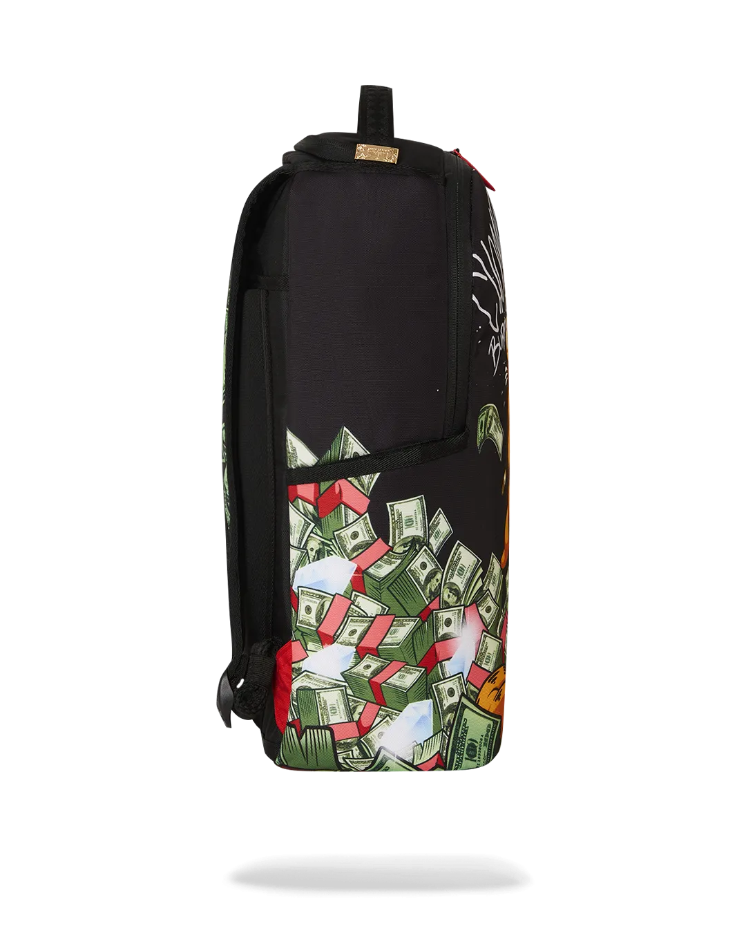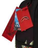 Dimensions: 18″ x 6″ x 11.5″ ? Front zipper pocket ? Side pockets ? Zippered Stash pocket ? Separate velour sunglass compartment ? Ergonomic mesh back padding ? Adjustable Straps for custom sizing ? Gold zippers with metal hardware ? Metal “Sprayground Authentic” badge ? Slide through back sleeve connects to carry-on luggage to free your hands