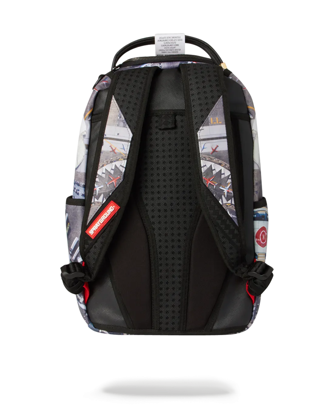 Dimensions: 18″ x 6″ x 11.5″ ? Front zipper pocket ? Side pockets ? Zippered Stash pocket ? Separate velour sunglass compartment ? Ergonomic mesh back padding ? Adjustable Straps for custom sizing ? Gunmetal and red zippers with metal hardware ? Metal “Sprayground Authentic” badge ? Slide through back sleeve connects to carry-on luggage to free your hands
