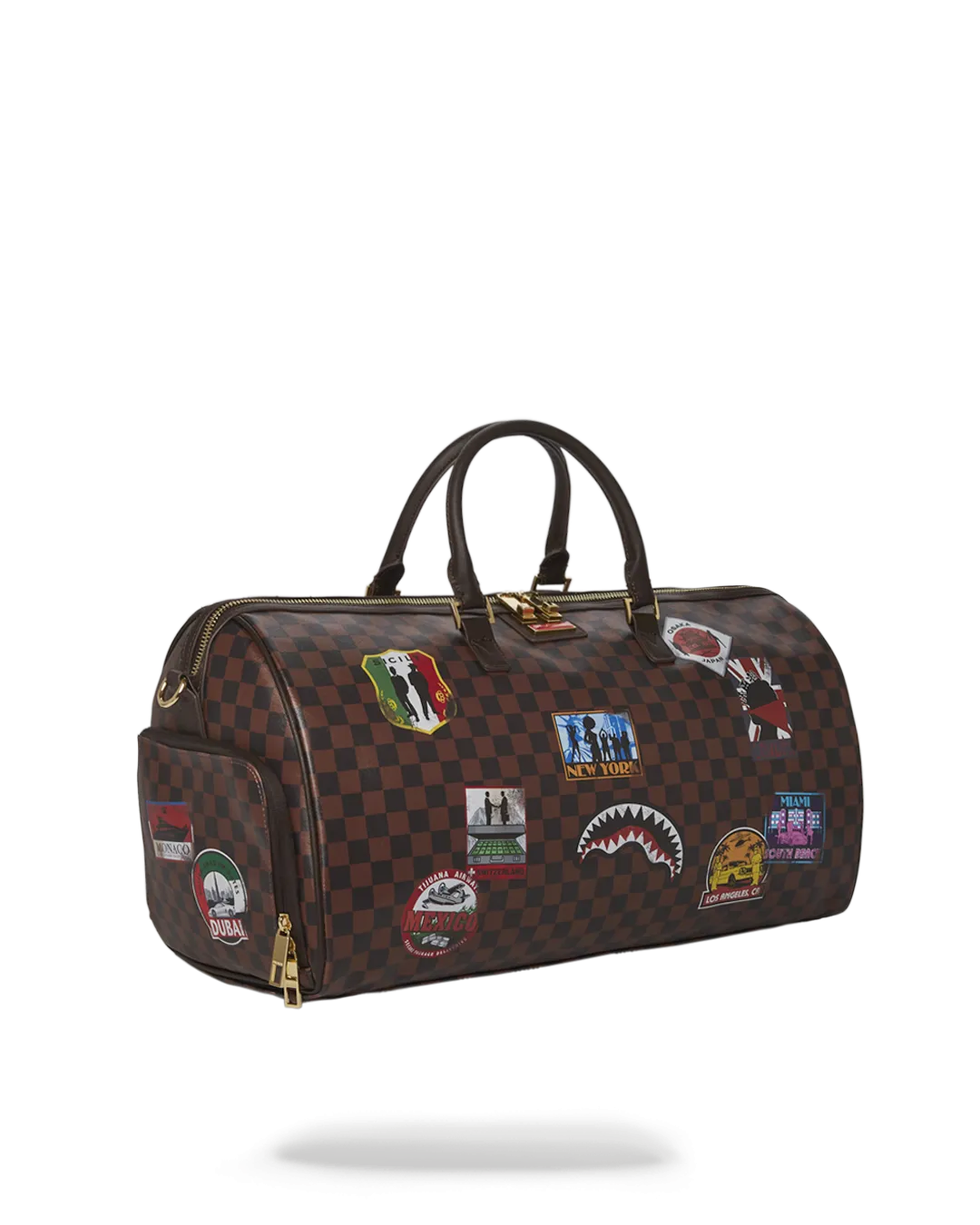 THE PERFECT BAG TO SEE THE WORLD! 15 Patch Designs from all over the world from our creator DBD??s Sprayground adventures to inspire you on your next journey! New York, Miami, Los Angeles, Kingston, Shanghai, Osaka, Sicily, Mexico, London, Monaco, Dubai, Colombia, Bangkok, Moscow & Switzerland
