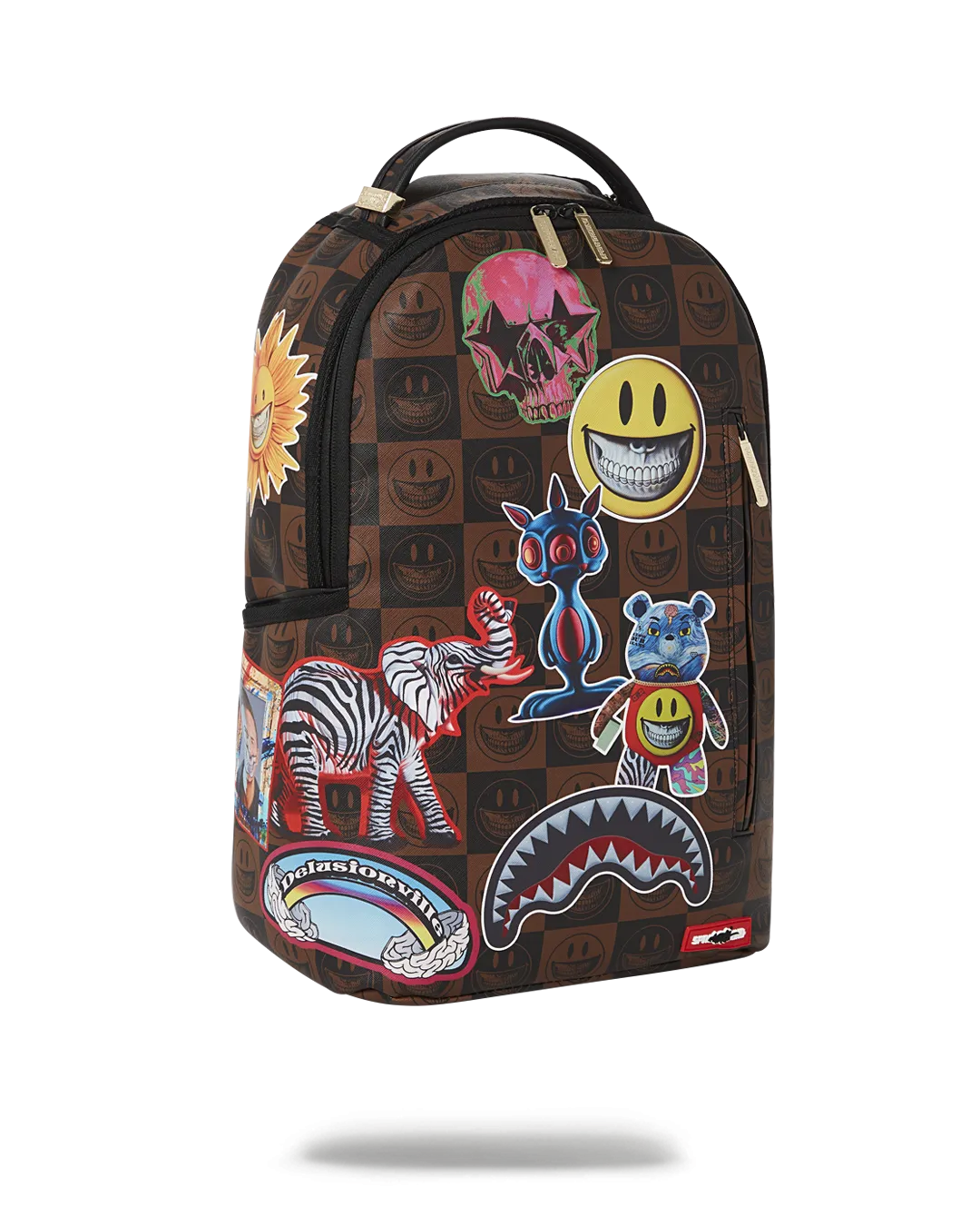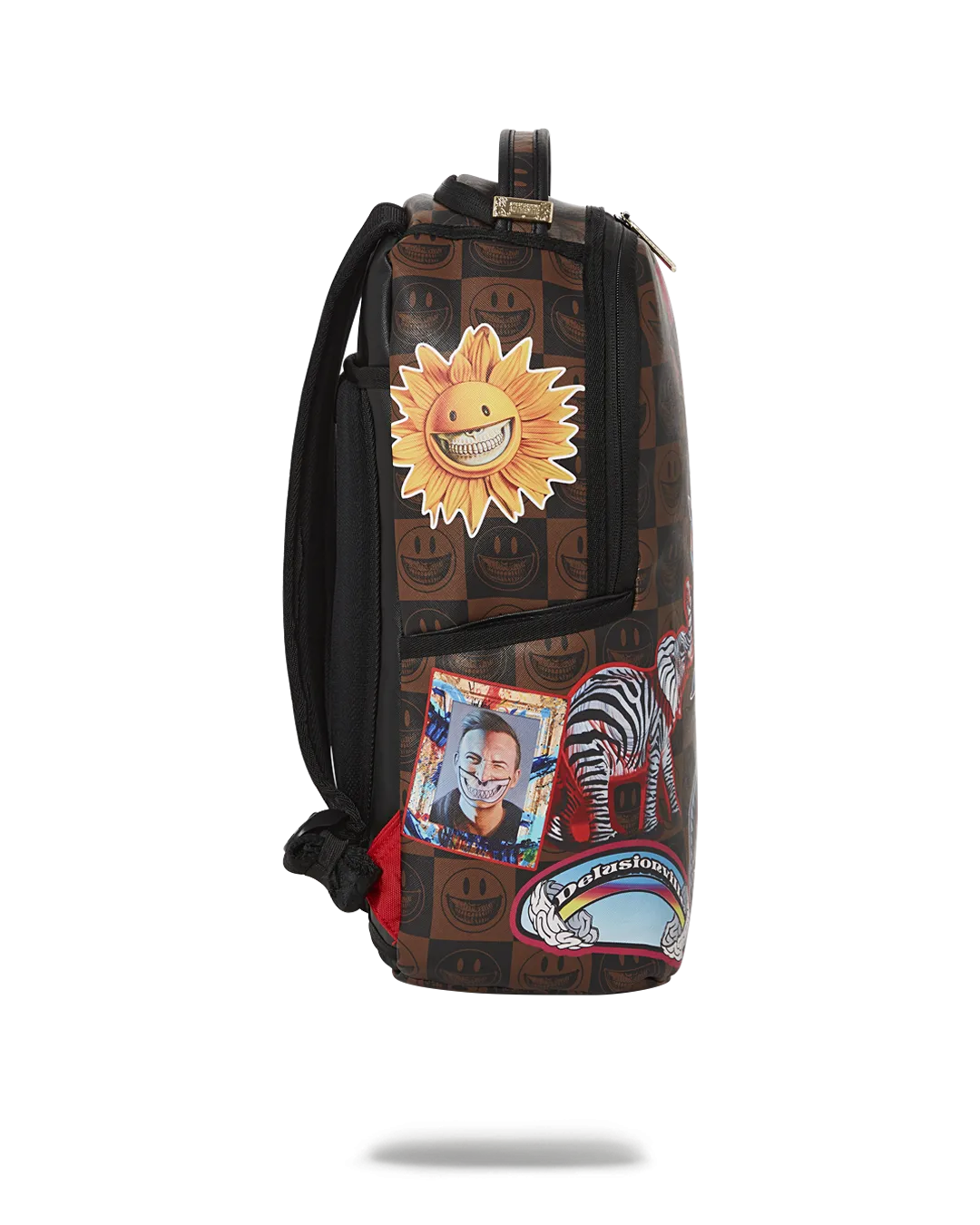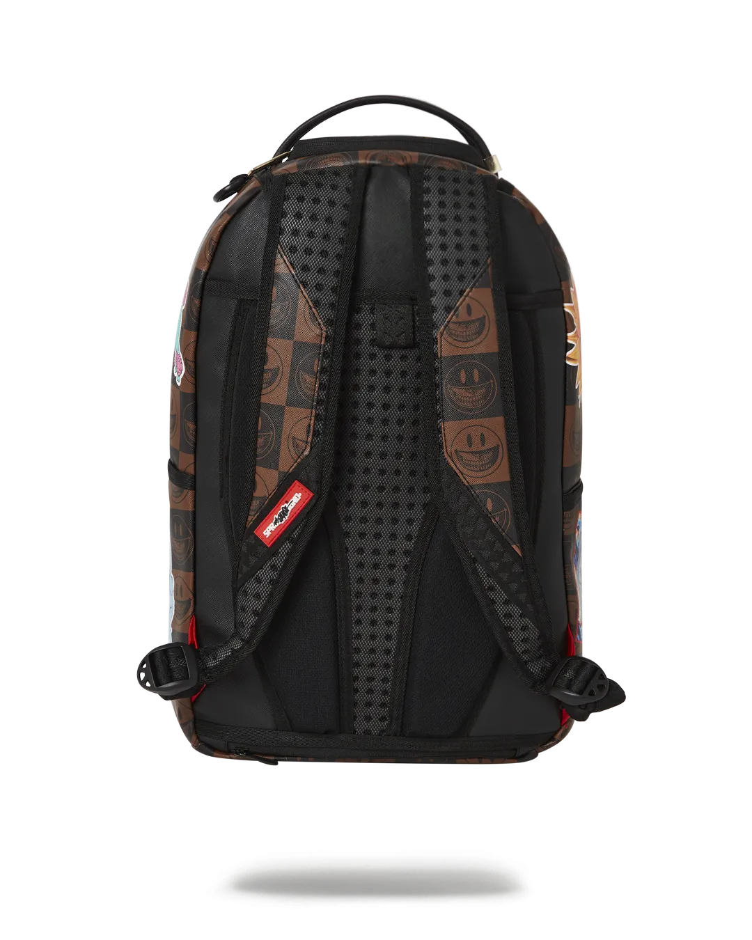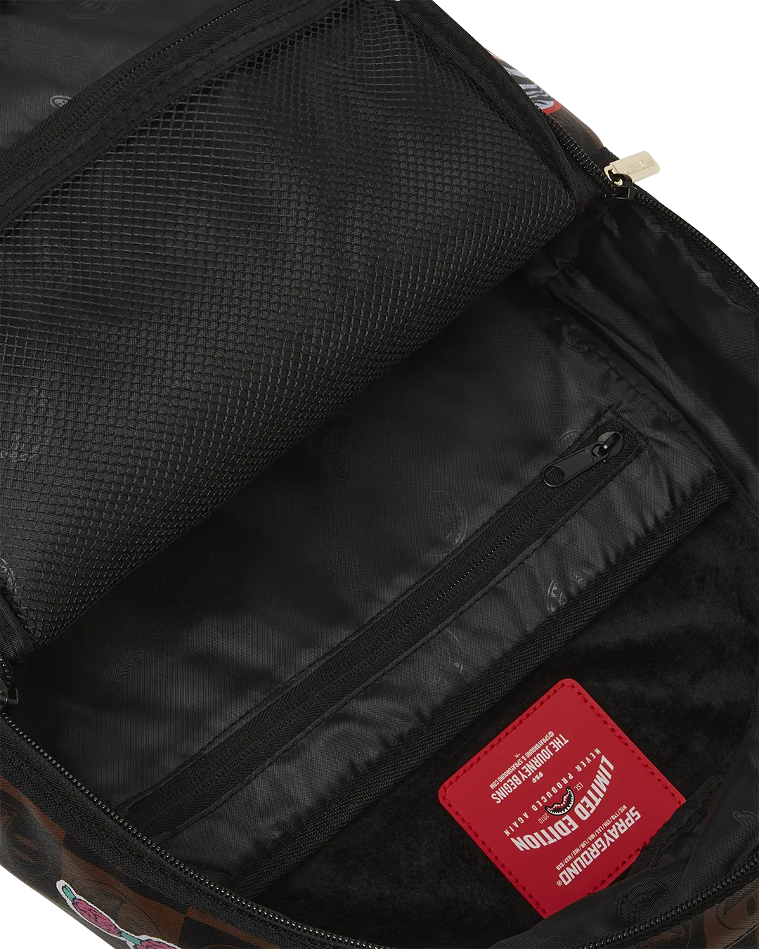 Dimensions: 18″ x 6″ x 11.5″ ? Front zipper pocket ? Side pockets ? Zippered Stash pocket ? Separate velour sunglass compartment ? Ergonomic mesh back padding ? Adjustable Straps for custom sizing ? Gold zippers with metal hardware ? Metal “Sprayground Authentic” badge ? Slide through back sleeve connects to carry-on luggage to free your hands