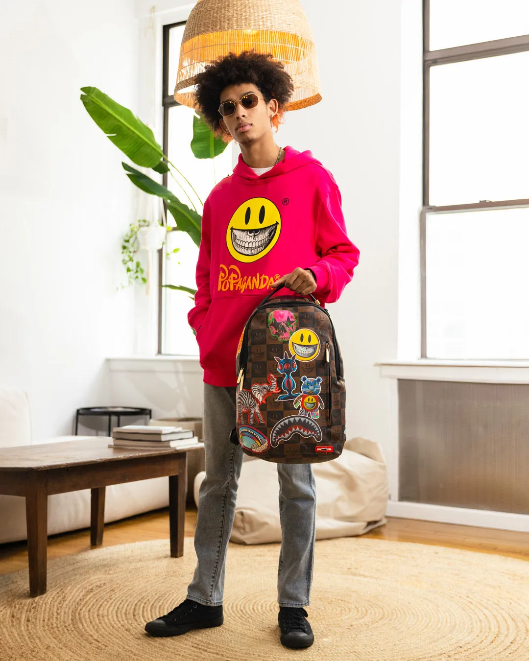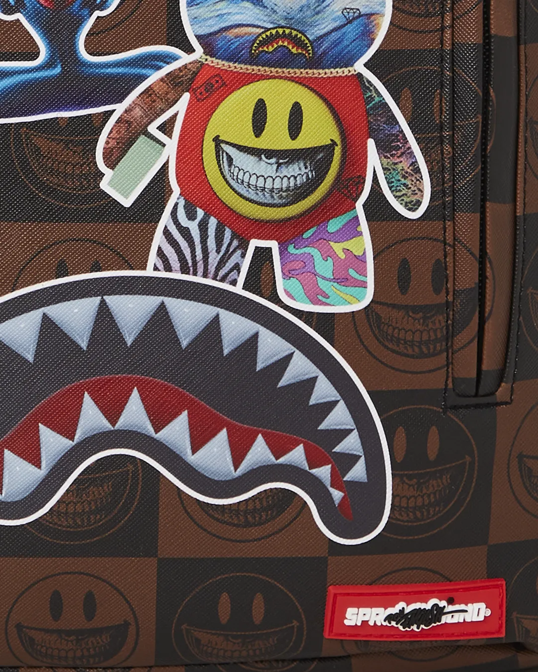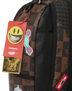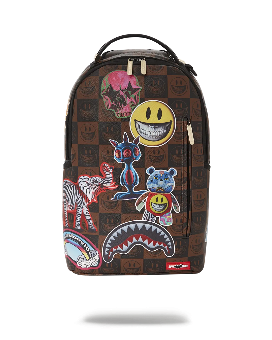 Dimensions: 18″ x 6″ x 11.5″ ? Front zipper pocket ? Side pockets ? Zippered Stash pocket ? Separate velour sunglass compartment ? Ergonomic mesh back padding ? Adjustable Straps for custom sizing ? Gold zippers with metal hardware ? Metal “Sprayground Authentic” badge ? Slide through back sleeve connects to carry-on luggage to free your hands