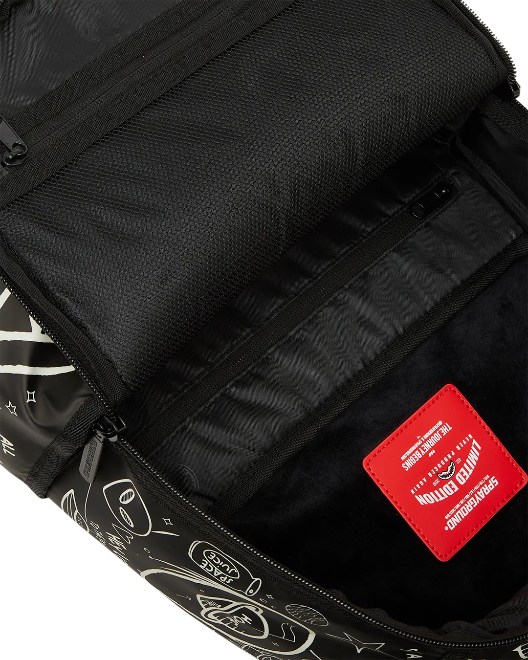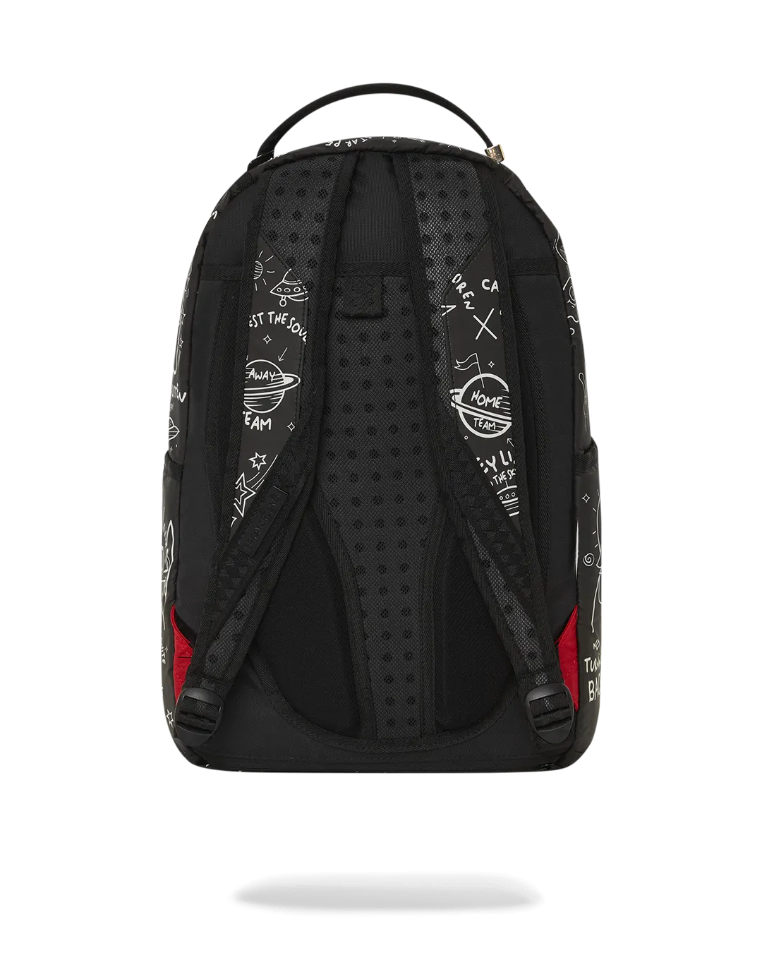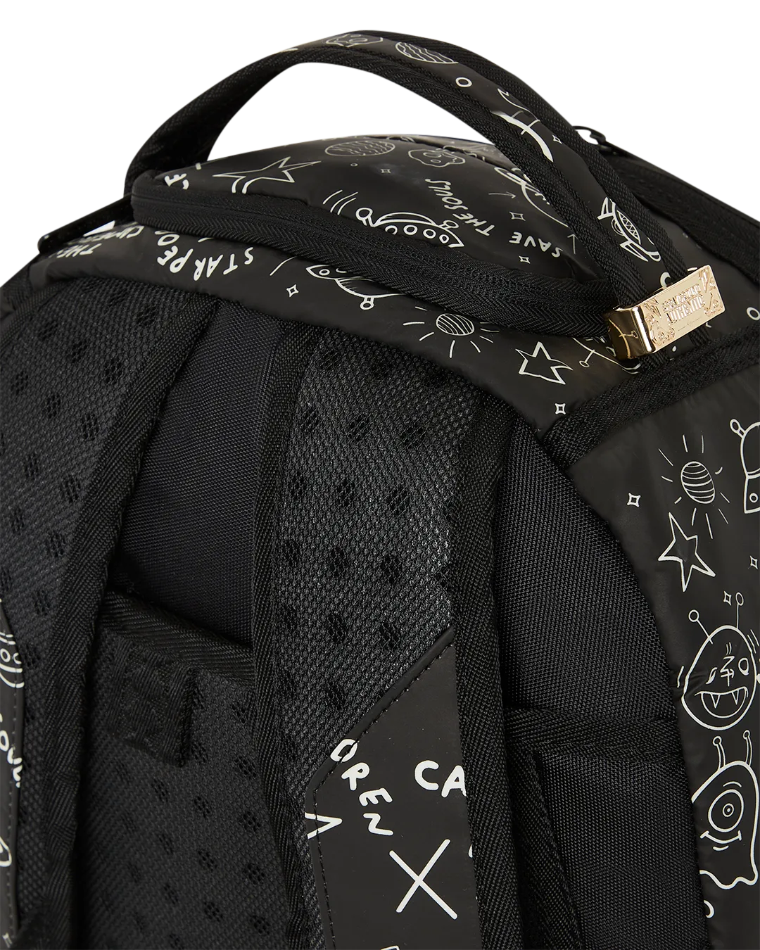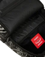 Dimensions: 18″ x 6″ x 11.5″ ? Front zipper pocket ? Side pockets ? Zippered Stash pocket ? Separate velour sunglass compartment ? Ergonomic mesh back padding ? Adjustable Straps for custom sizing ? Gold zippers with metal hardware ? Metal “Sprayground Authentic” badge ? Slide through back sleeve connects to carry-on luggage to free your hands