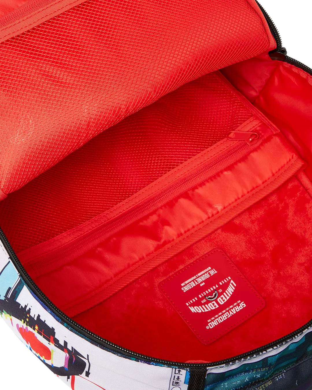 Dimensions: 18″ x 6″ x 11.5″ ? Front zipper pocket ? Side pockets ? Zippered Stash pocket ? Separate velour sunglass compartment ? Ergonomic mesh back padding ? Adjustable Straps for custom sizing ? Gold zippers with metal hardware ? Metal “Sprayground Authentic” badge ? Slide through back sleeve connects to carry-on luggage to free your hands