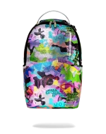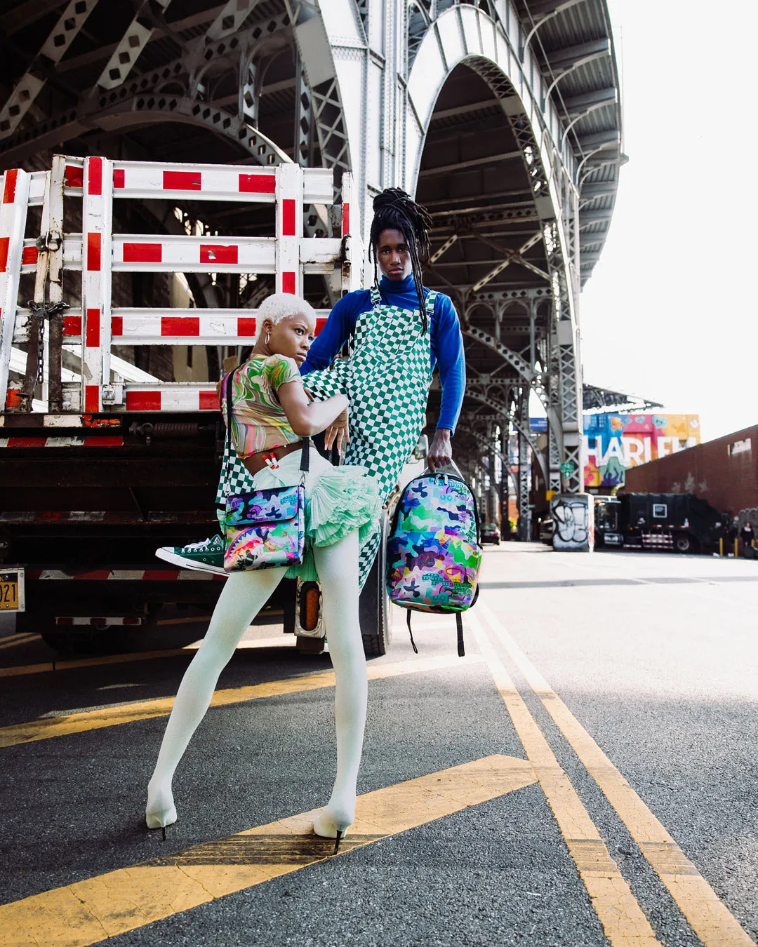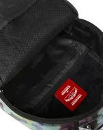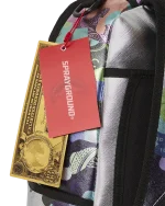 Dimensions: 18″ x 6″ x 11.5″ ? Front zipper pocket ? Side pockets ? Zippered Stash pocket ? Separate velour sunglass compartment ? Ergonomic mesh back padding ? Adjustable Straps for custom sizing ? Gold zippers with metal hardware ? Metal “Sprayground Authentic” badge ? Slide through back sleeve connects to carry-on luggage to free your hands
