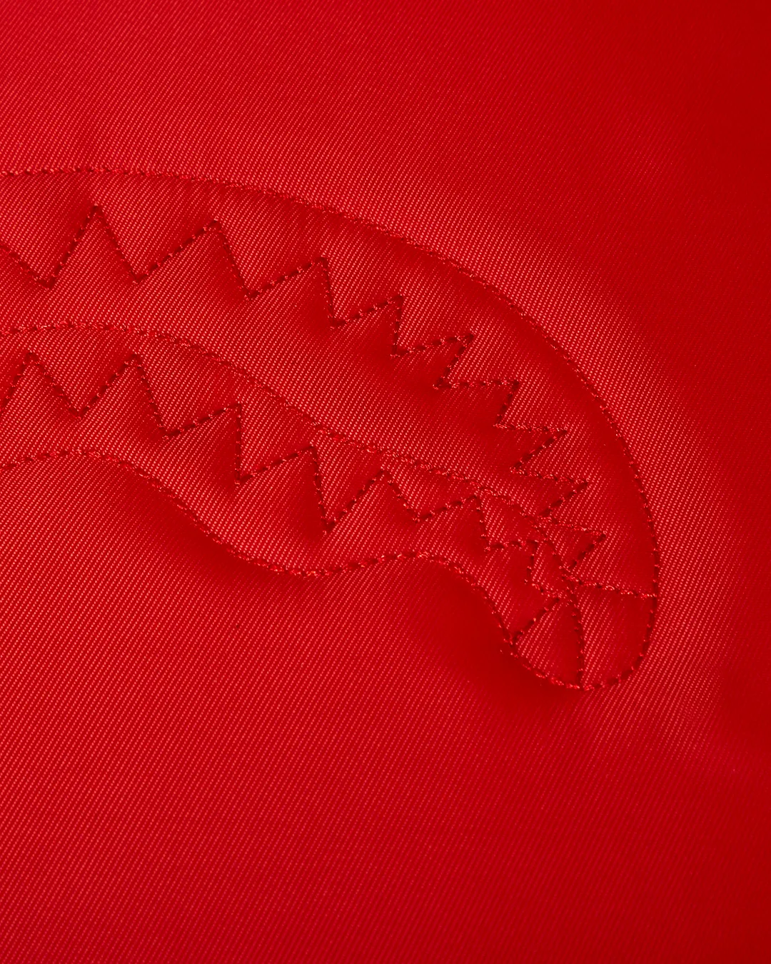 Customized Red Satin lining with Embossed Shark logo and Vegan leather trims