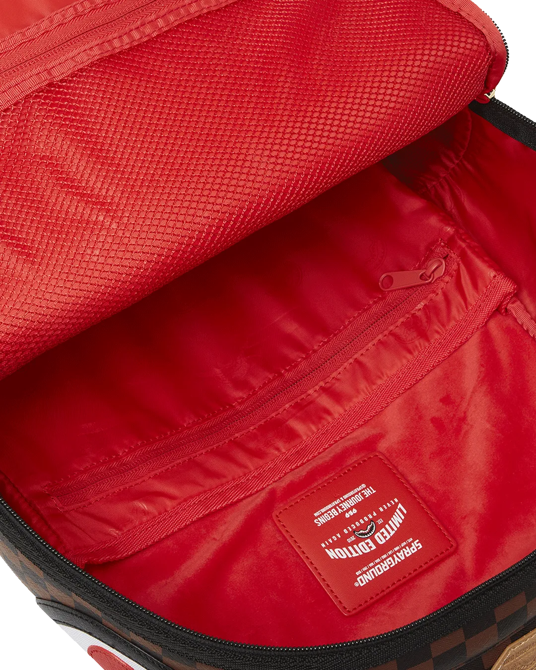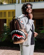 Dimensions: 18″ x 6″ x 11.5″ ? Front zipper pocket ? Side pockets ? Zippered Stash pocket ? Separate velour sunglass compartment ? Ergonomic mesh back padding ? Adjustable Straps for custom sizing ? Gold zippers with metal hardware ? Metal “Sprayground Authentic” badge ? Slide through back sleeve connects to carry-on luggage to free your hands