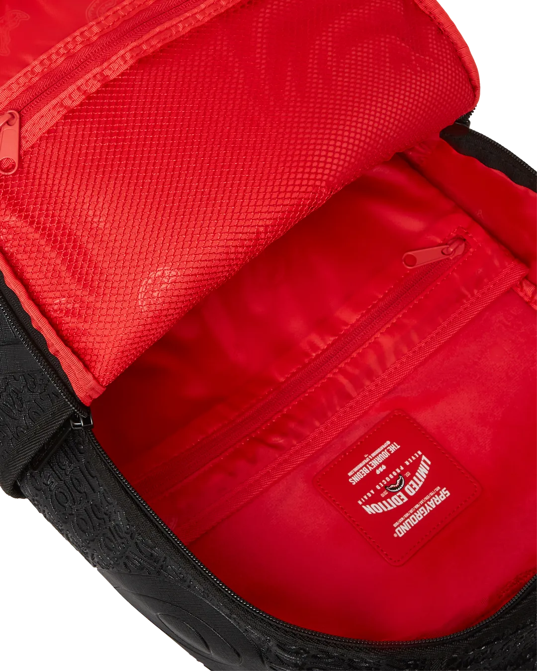 Dimensions: 18″ x 6″ x 11.5″ ? Front zipper pocket ? Side pockets ? Zippered Stash pocket ? Separate velour sunglass compartment ? Ergonomic mesh back padding ? Adjustable Straps for custom sizing ? Gold zippers with metal hardware ? Metal “Sprayground Authentic” badge ? Slide through back sleeve connects to carry-on luggage to free your hands