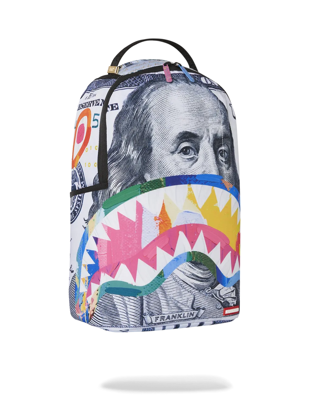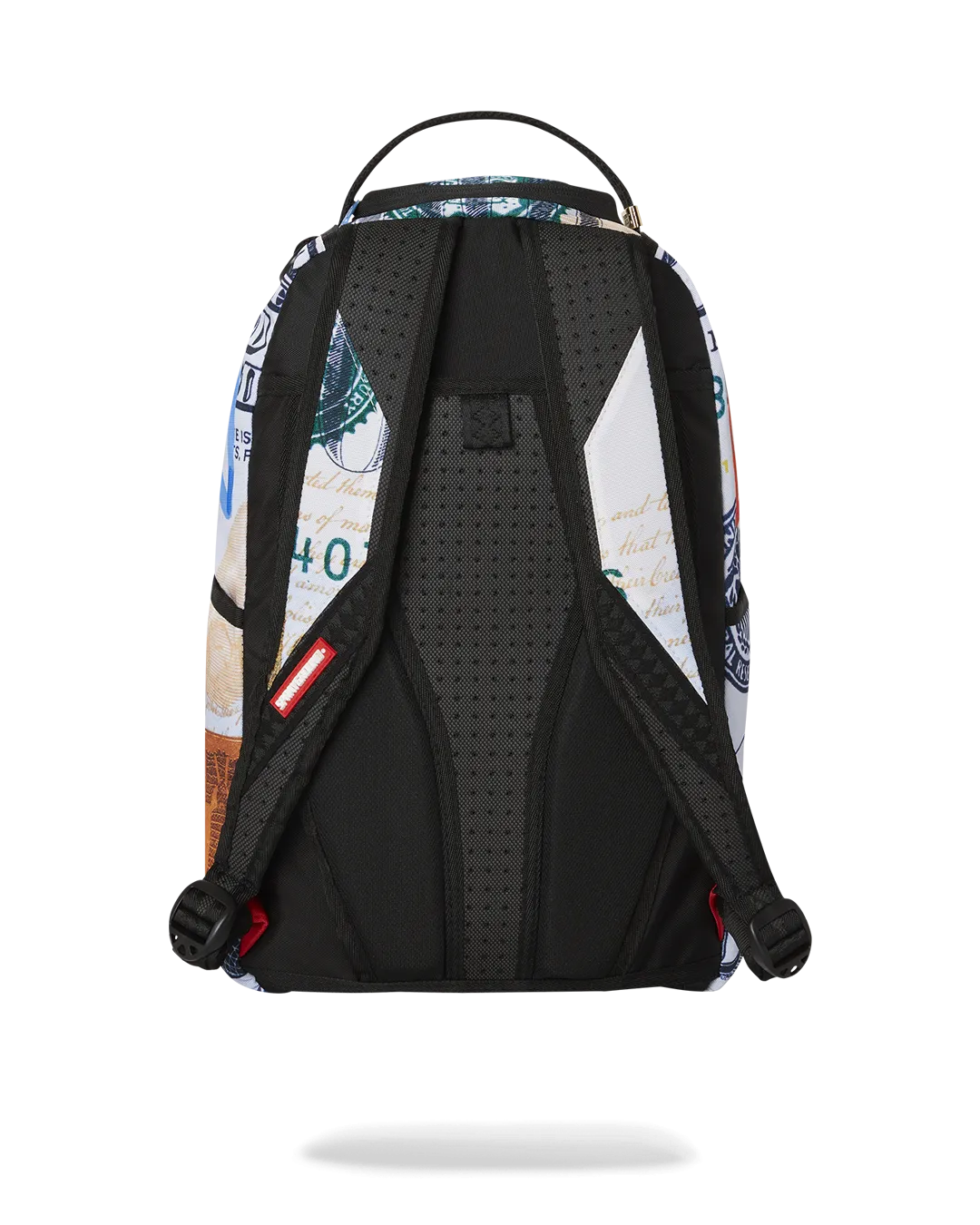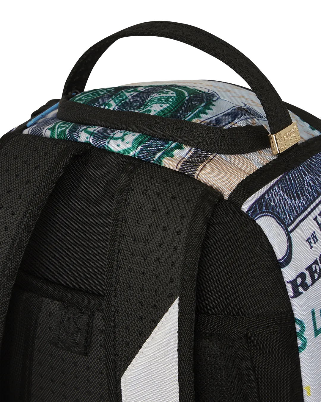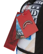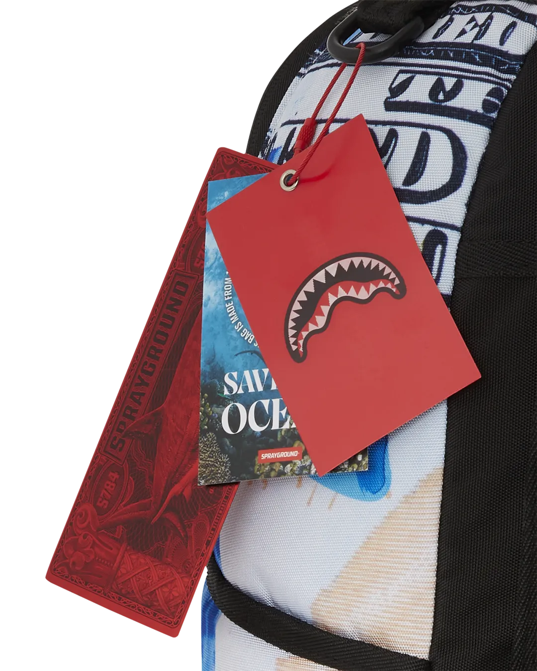 Dimensions: 18″ x 6″ x 11.5″ ? Front zipper pocket ? Side pockets ? Zippered Stash pocket ? Separate velour sunglass compartment ? Ergonomic mesh back padding ? Adjustable Straps for custom sizing ? Gold zippers with metal hardware ? Metal “Sprayground Authentic” badge ? Slide through back sleeve connects to carry-on luggage to free your hands