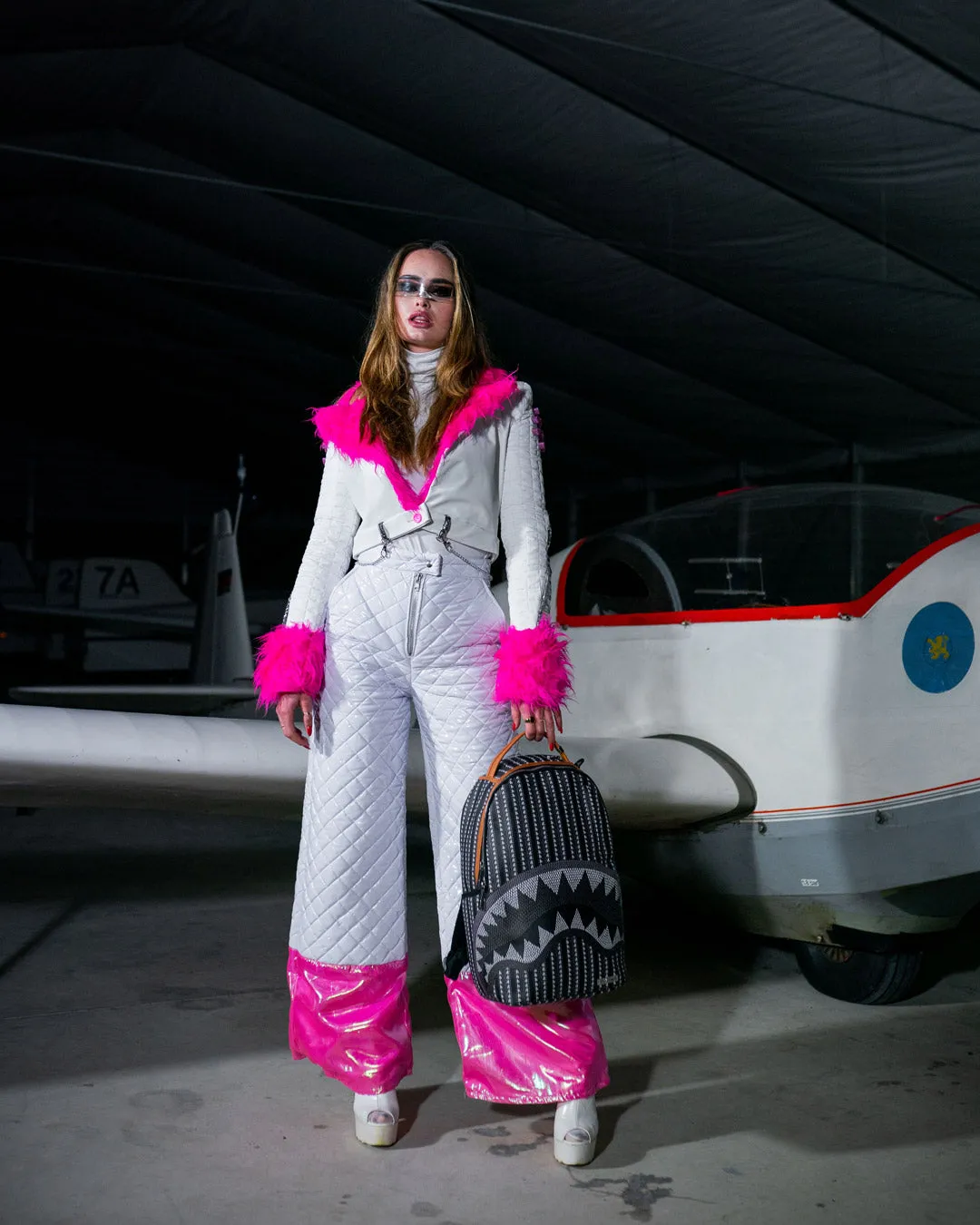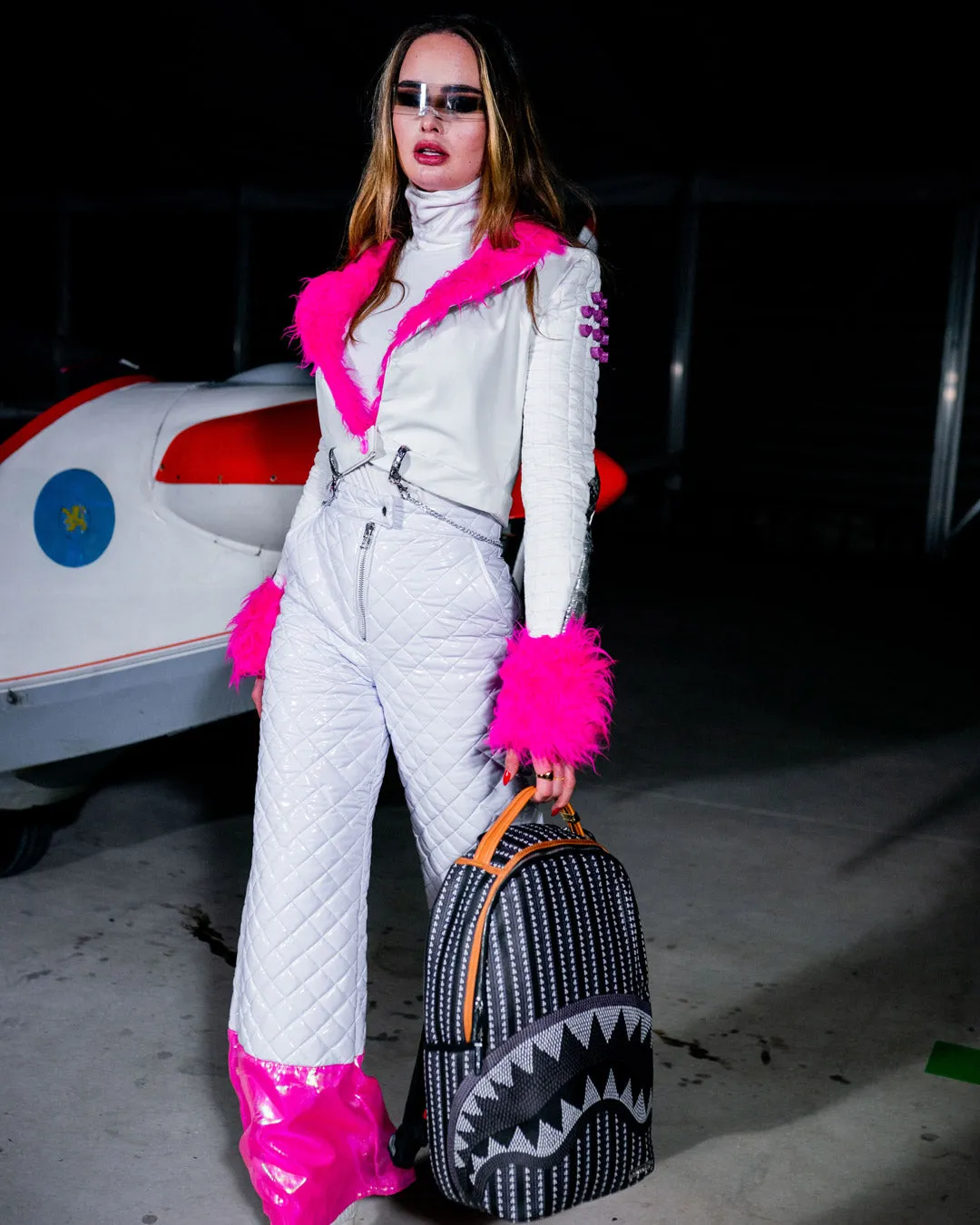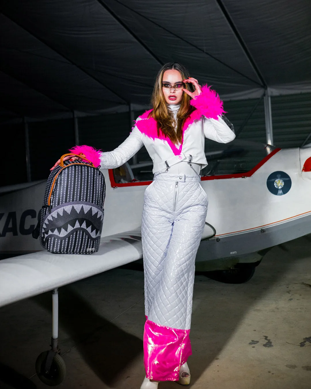 Dimensions: 18″ x 6″ x 11.5″ ? Front zipper pocket ? Side pockets ? Zippered Stash pocket ? Separate velour sunglass compartment ? Ergonomic mesh back padding ? Adjustable Straps for custom sizing ??Silver?zippers with metal hardware ? Metal “Sprayground Authentic” badge ? Slide through back sleeve connects to carry-on luggage to free your hands