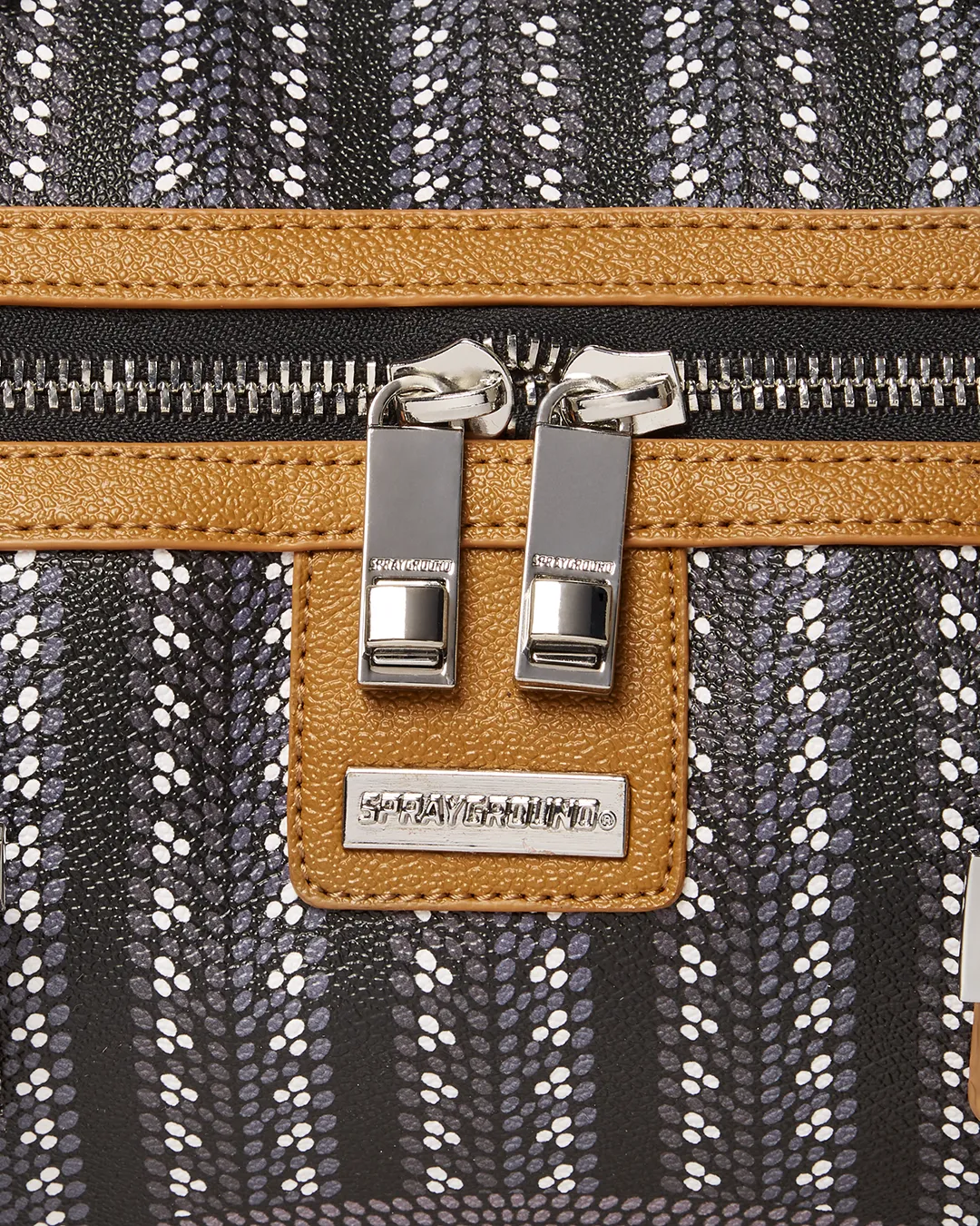 Dimensions: 20″ x 10″ x 10.75″ ? Metal zipper pocket??Back Zippers ?Zippered sneaker pocket ? gold zippers ? Adjustable Straps for custom sizing ?Metal Zippers with Metal Hardware ? bag of Sprayground money
