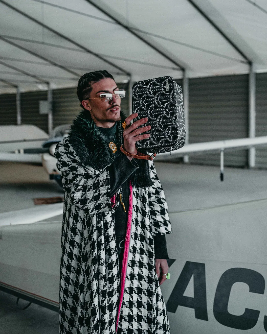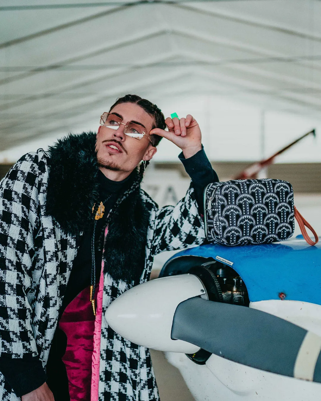 Dimensions: 10″ x 3.25″ x 8″ ? Two zippered compartments ? Side handle ? Gunmetal zippers with metal hardware