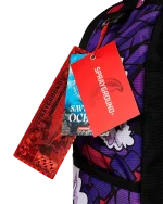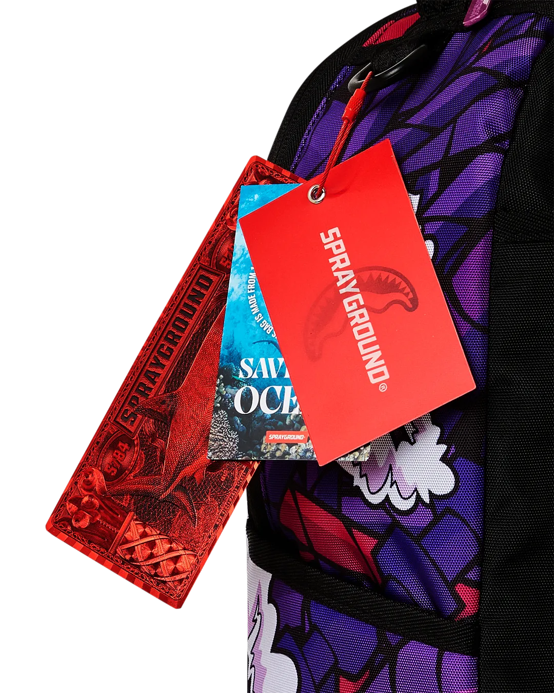 Dimensions: 18″ x 6″ x 11.5″ ? Front zipper pocket ? Side pockets ? Zippered Stash pocket ? Separate velour sunglass compartment ? Ergonomic mesh back padding ? Adjustable Straps for custom sizing ? Gold zippers with metal hardware ? Metal “Sprayground Authentic” badge ? Slide through back sleeve connects to carry-on luggage to free your hands