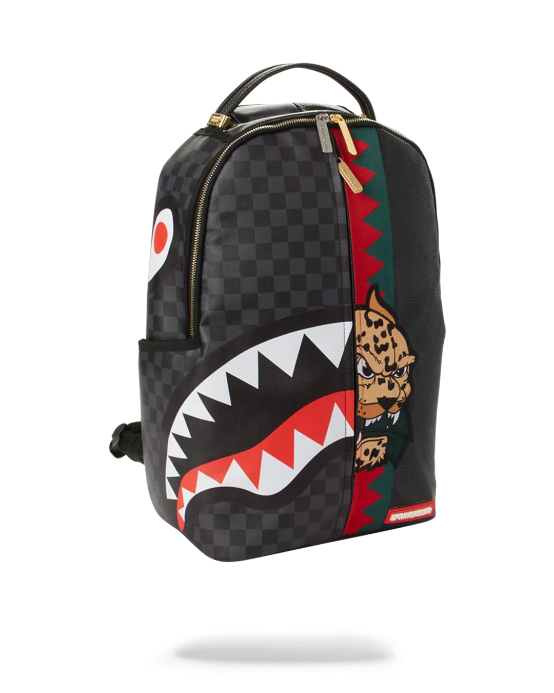 Dimensions: 18″ x 6″ x 11.5″ ? Front zipper pocket ? Side pockets ? Zippered Stash pocket ? Separate velour sunglass compartment ? Ergonomic mesh back padding ? Adjustable Straps for custom sizing ? Gold and silver zippers with metal hardware ? Metal “Sprayground Authentic” badge ? Slide through back sleeve connects to carry-on luggage to free your hands