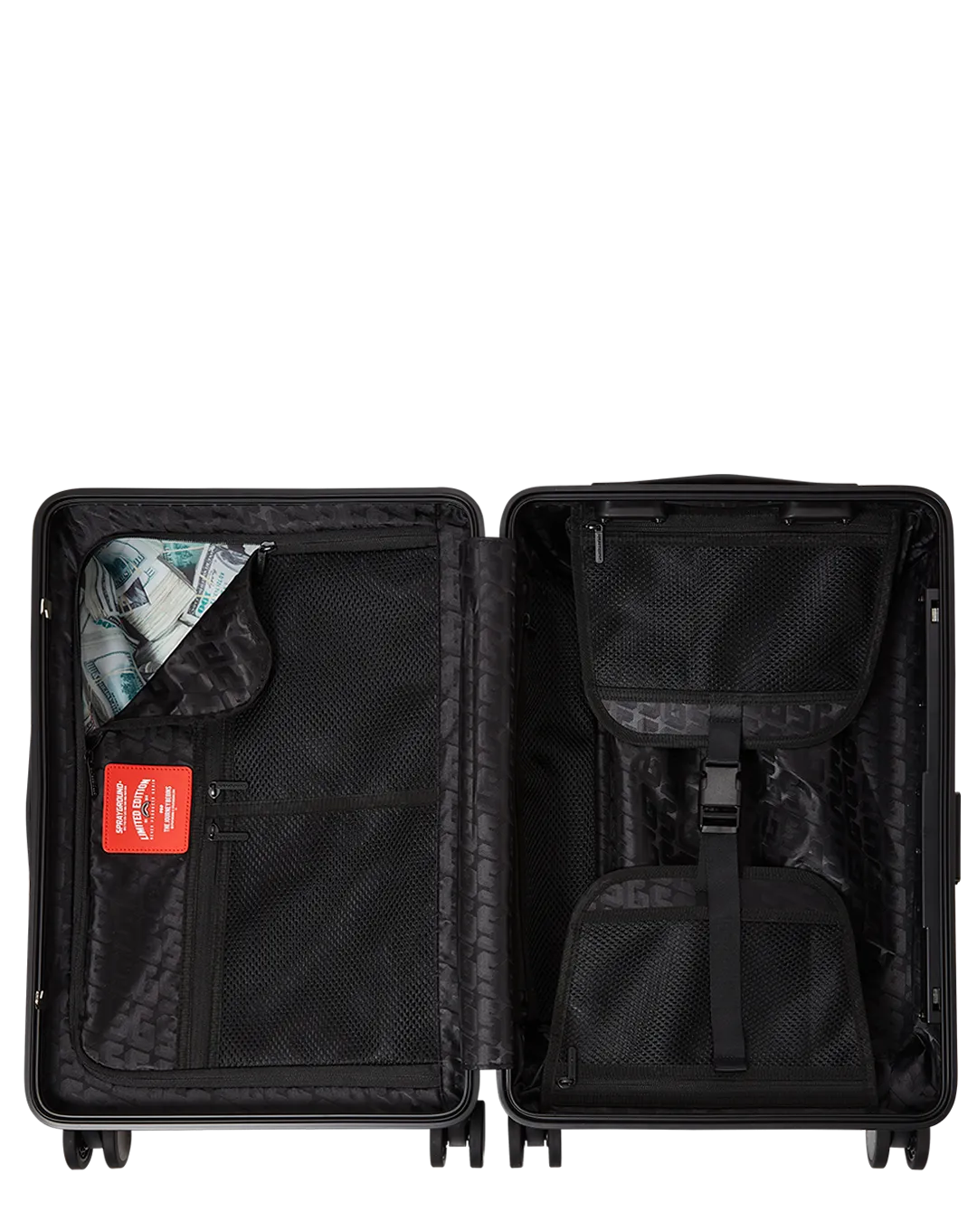 Sprayground products are rigorously tested to ensure that the travel products you trust meet stringent standards. Consequently, if a problem occurs with this Sprayground luggage and the problem is caused by manufacturing defects in material and workmanship, Sprayground will, in its discretion, either fix or replace the luggage in accordance with the warranty terms and conditions stated herein. The warranty provided for herein applies only to the first purchaser or gift recipient of the luggage for a period of one year starting from the date this luggage was purchased. This warranty covers only manufacturing defects and does not cover any damage caused by misuse such as transportation of unusual items, neglect, accidents, abrasion, exposure to extreme temperatures, solvents, acids, water, normal wear and tear or transport damage. The warranty provided herein is limited to the value of the Product. Manufacturing specifications are subject to change without notice. Product is made in limited edition production and if product needs to be replaced and it is not available anymore, then either a store credit will be given if the product can not be replaced.