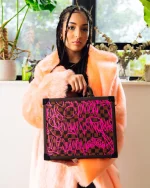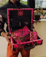 Customized Red Satin lining with Embossed Shark logo and Vegan leather trims