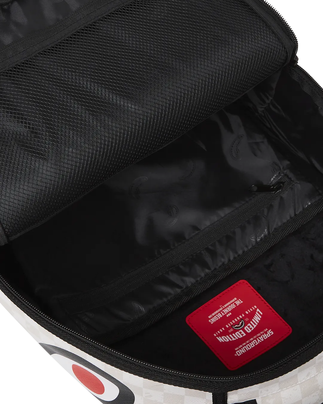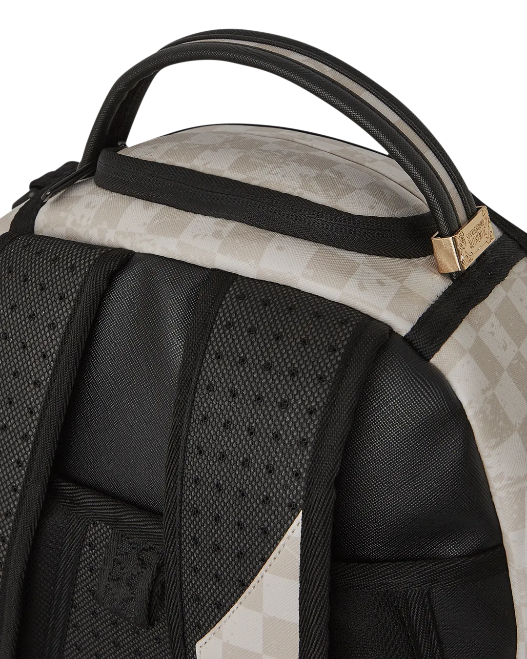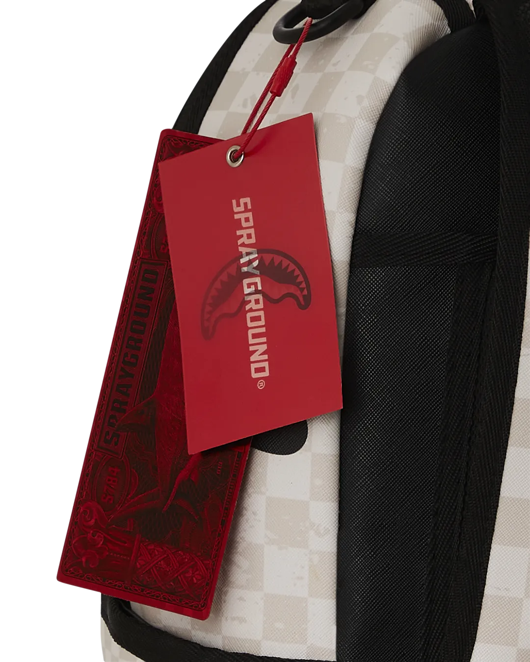 Dimensions: 18″ x 6″ x 11.5″ ? Front zipper pocket ? Side pockets ? Zippered Stash pocket ? Separate velour sunglass compartment ? Ergonomic mesh back padding ? Adjustable Straps for custom sizing ? Gold zippers with metal hardware ? Metal “Sprayground Authentic” badge ? Slide through back sleeve connects to carry-on luggage to free your hands