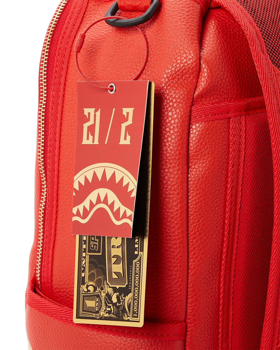 Dimensions: 18″ x 6″ x 11.5″ ? Front zipper pocket ? Side pockets ? Zippered Stash pocket ? Separate velour sunglass compartment ? Ergonomic mesh back padding ? Adjustable Straps for custom sizing ? Gold zippers with metal hardware ? Metal “Sprayground Authentic” badge ? Slide through back sleeve connects to carry-on luggage to free your hands